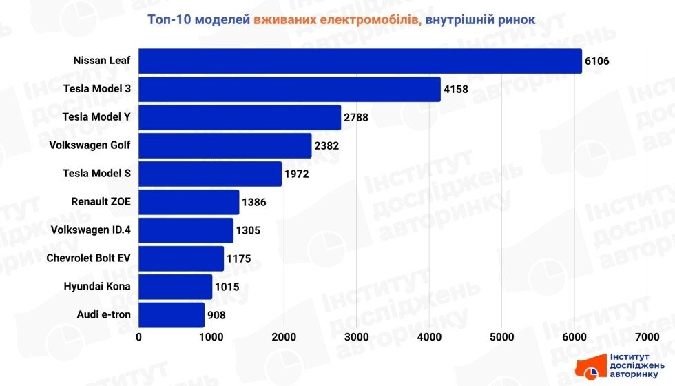 ТОП 10 моделей б/в електромобілів в Україні (інфографіка)