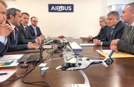 "В Оксфорде с вице-президентом Airbus Helicopters Оливье Мишелоном обсудили поставку вертолетов для МВД на 2020 год и запуск нового сервисного центра. Нацполиция, Госпогранслужба, ГСЧС и Нацгвардия получат еще 10 вертолетов Н225, Н145, Н125", — отметил руководитель ведомства Арсен Аваков.