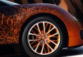 Цифра 16 на передних крыльях намекает на количество цилиндров в двигателе под "капотом" гиперкара, который уже назвали "самым быстрым арт-объектом в мире". Восьмилитровый W16 с турбонаддувом развивает 1001 лошадиную силу и разгоняет гиперкар до 407 км/ч. Впрочем, в открытом варианте Veyron Grand Sport способен разогнаться "всего" до 349 км/ч.