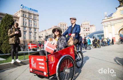 Ассоциация велосипедистов Киева провела сегодня акцию "Я еду на работу на велосипеде". Велосипедисты съехались с 11 точек сбора на Майдан, где их ожидал завтрак с кофе, конкурсы на лучший "деловой лук" и самую многочисленную корпоративную велоколонну