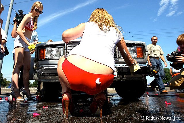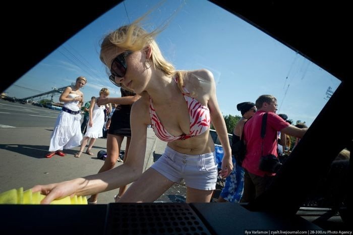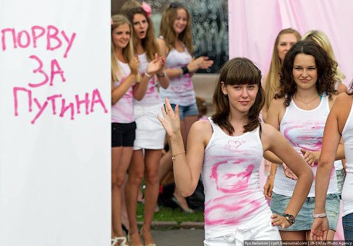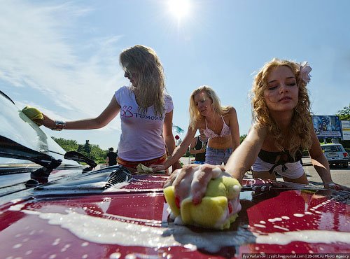 Как напоминает корреспондент «НР», накануне девушки из группы социальной сети «Вконтакте» «Мне реально нравится Путин», облачившись в купальники, организовали бесплатную мойку отечественных авто на Воробьевых горах. Логика в их действиях такая – Путин любит российские автомобили (он путешествовал по стране на желтой «Ладе-Калине»). Мы любим Путина. Поэтому мы бесплатно пропиарим себя и помоем машины.
