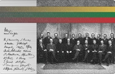 Новую монету посвятили дню подписания Акта независимости Литвы, который произошел 16 февраля 1918 года. Документ утвердили подписями 20 участников.
