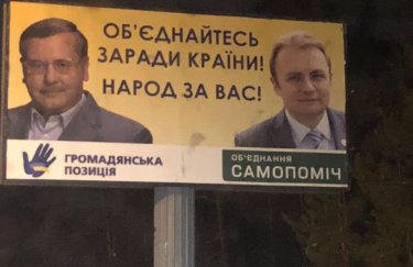 Напомним, весной появился билборд, с лицами Гриценко и Садового и подписью "Объединяйтесь ради страны! Народ за вас!". Кто автор и заказчик этого борда не известно. И Садовый, и Гриценко от него открестились.
