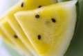С виду это обычный полосатый арбуз, только внутри он ярко-желтый. Но вдобавок к непривычной окраске этот арбуз содержит совсем немного, по сравнению с обычным, косточек. Такой арбуз появился на свет в результате скрещивания дикого арбуза, который как раз желтого цвета (правда, есть его невозможно), с обычным. И теперь круглые желтые арбузы выращивают летом в Испании, а овальные — зимой в Таиланде. Кстати, там желтый арбуз особенно уважают, ведь по тайским поверьям желтый цвет притягивает деньги. Арбуз этот нежный и сочный, правда, не такой сладкий, как красный.