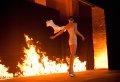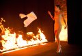 Да, в зале был подиум, над которым бежали светящиеся строки - цитаты из книг Жана Бодрийяра. По подиуму дефилировали в прекрасных белых архитектурных платьях красавицы-модели. Но вот луч прожектора, сопровождавший всю эту красоту, погас. Зал погрузился в полную темноту, которую взорвала вспышка огня, возникшего в конце подиума. Огонь был большой, настоящий, индустриальный - ассоциирующийся с огнем в мартеновской печи. И на глазах у ошеломленных зрителей в него были брошены прекрасные белые платья.