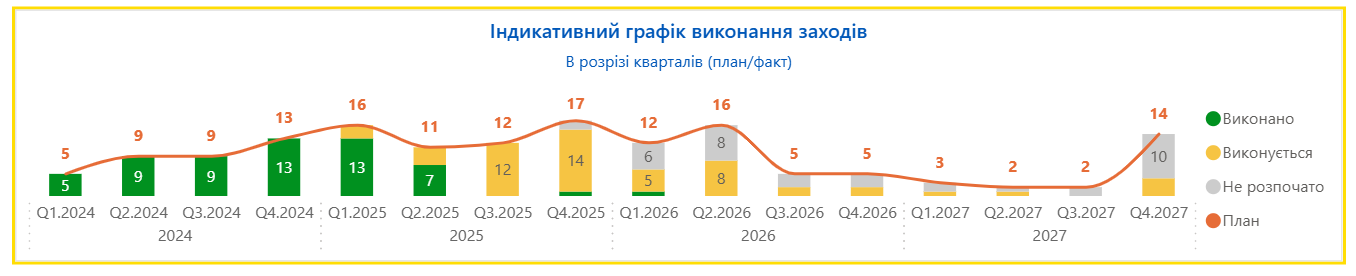 Тобто, за перший квартал поточного року Україна мала би виконати приблизно таку ж кількість індикаторів, як за півроку 2024-го.
