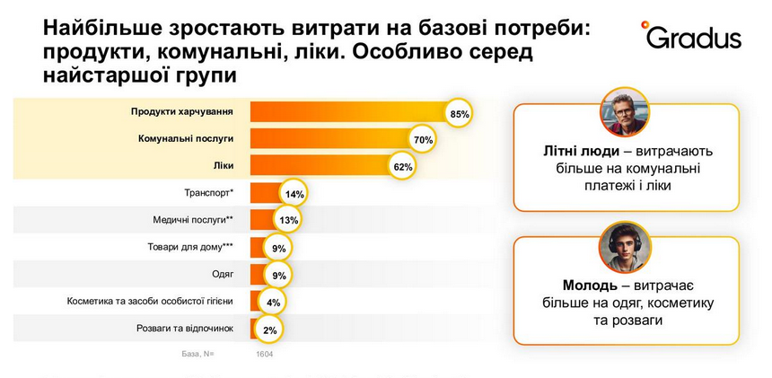 Українці відчутно збільшили витрати на продукти харчування, комунальні послуги та ліки.