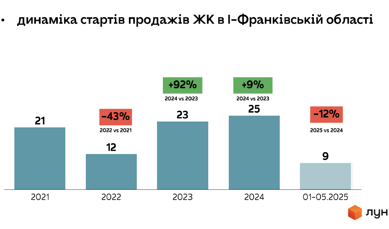 Франківськ також входить до трійки регіонів із найактивнішим будівництвом - після Львова та Києва: за останні три роки у місті стартувало зведення 66 нових житлових комплексів.