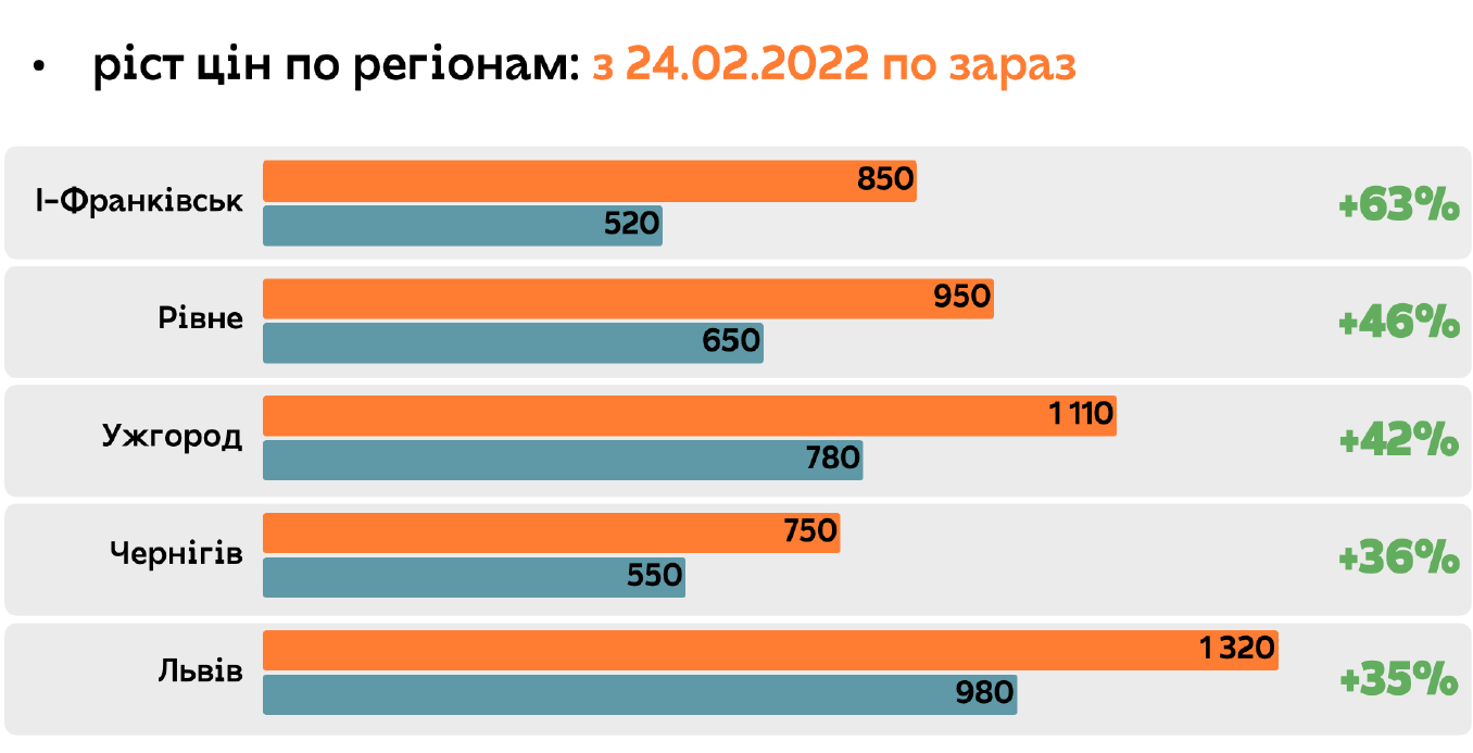 За її словами, до п'ятірки міст, де найбільше дорожчає дитло в новобудовах, увійшли також Рівне (+43%), Ужгород (+42%), Чернігів (+36%) та Львів (+35%).