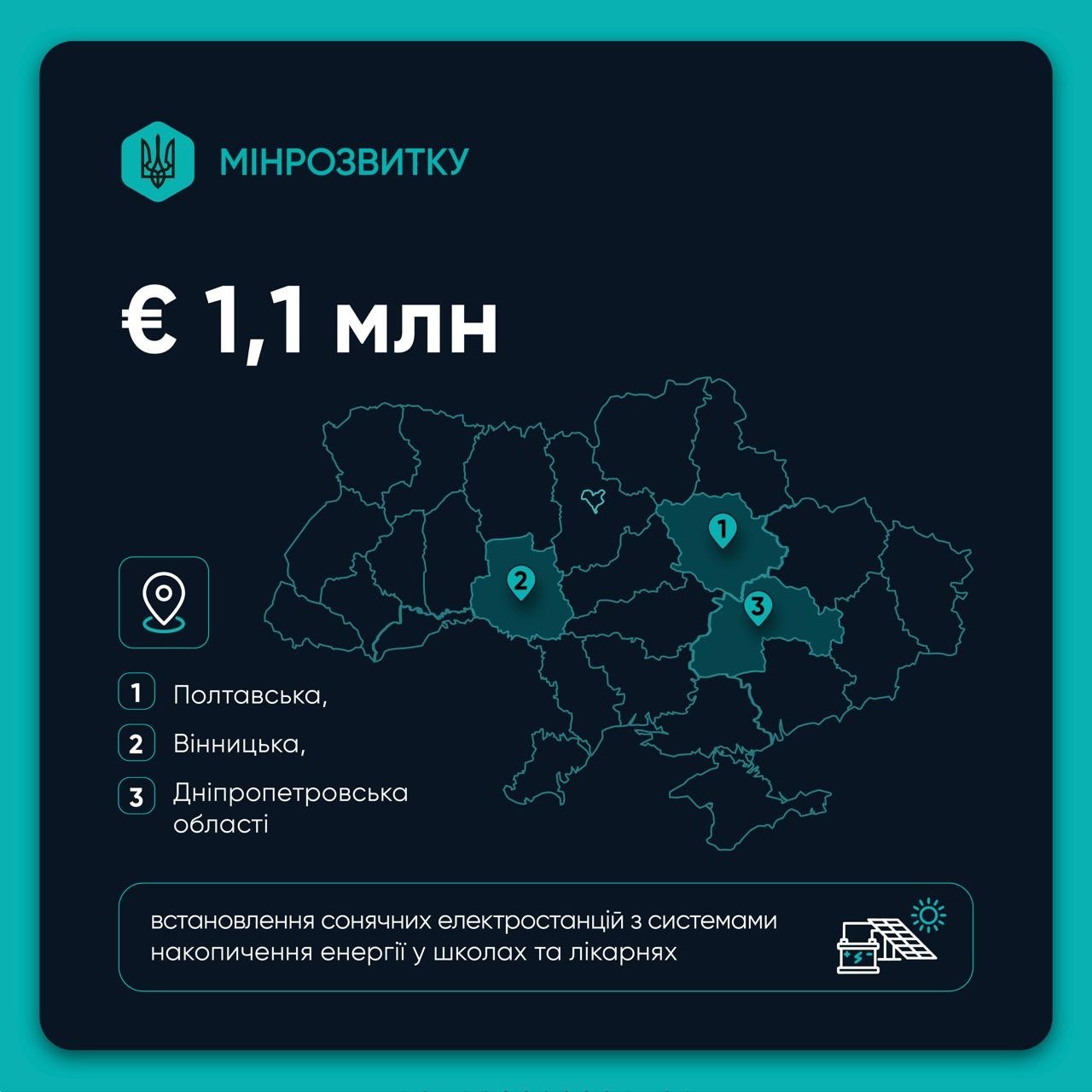 Кошти будуть спрямовані на проєкти у Львівській, Дніпропетровській, Полтавській, Вінницькій, Тернопільській, Хмельницькій, Рівненській та Івано-Франківській областях.