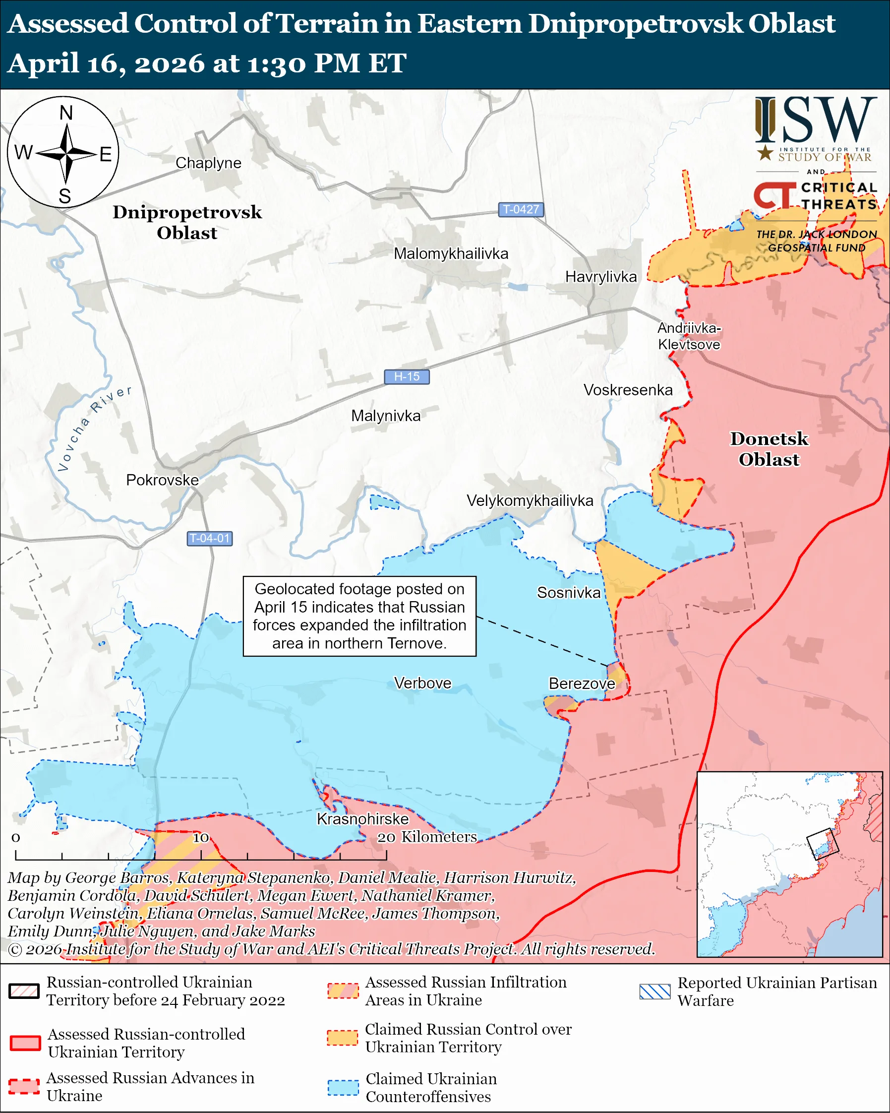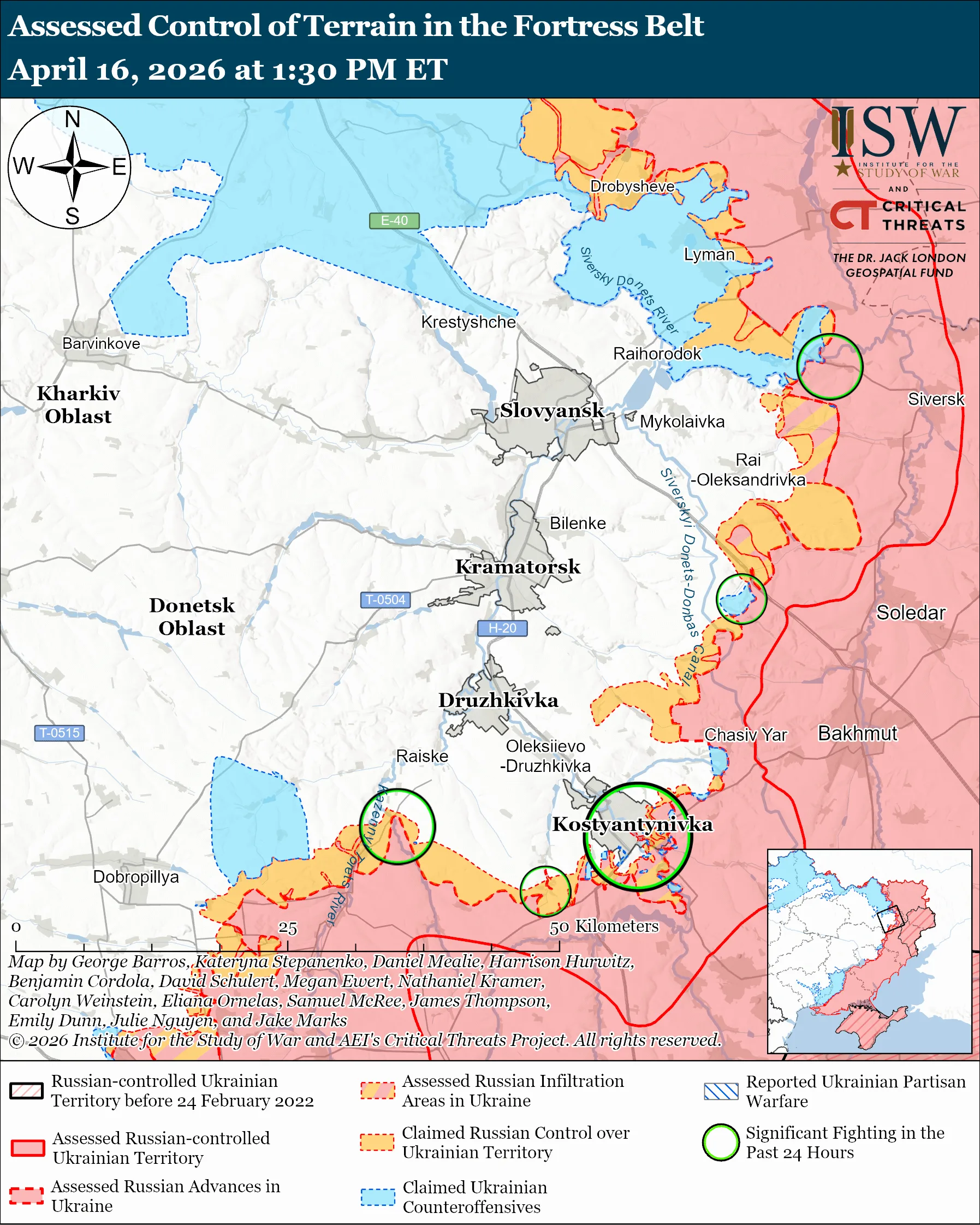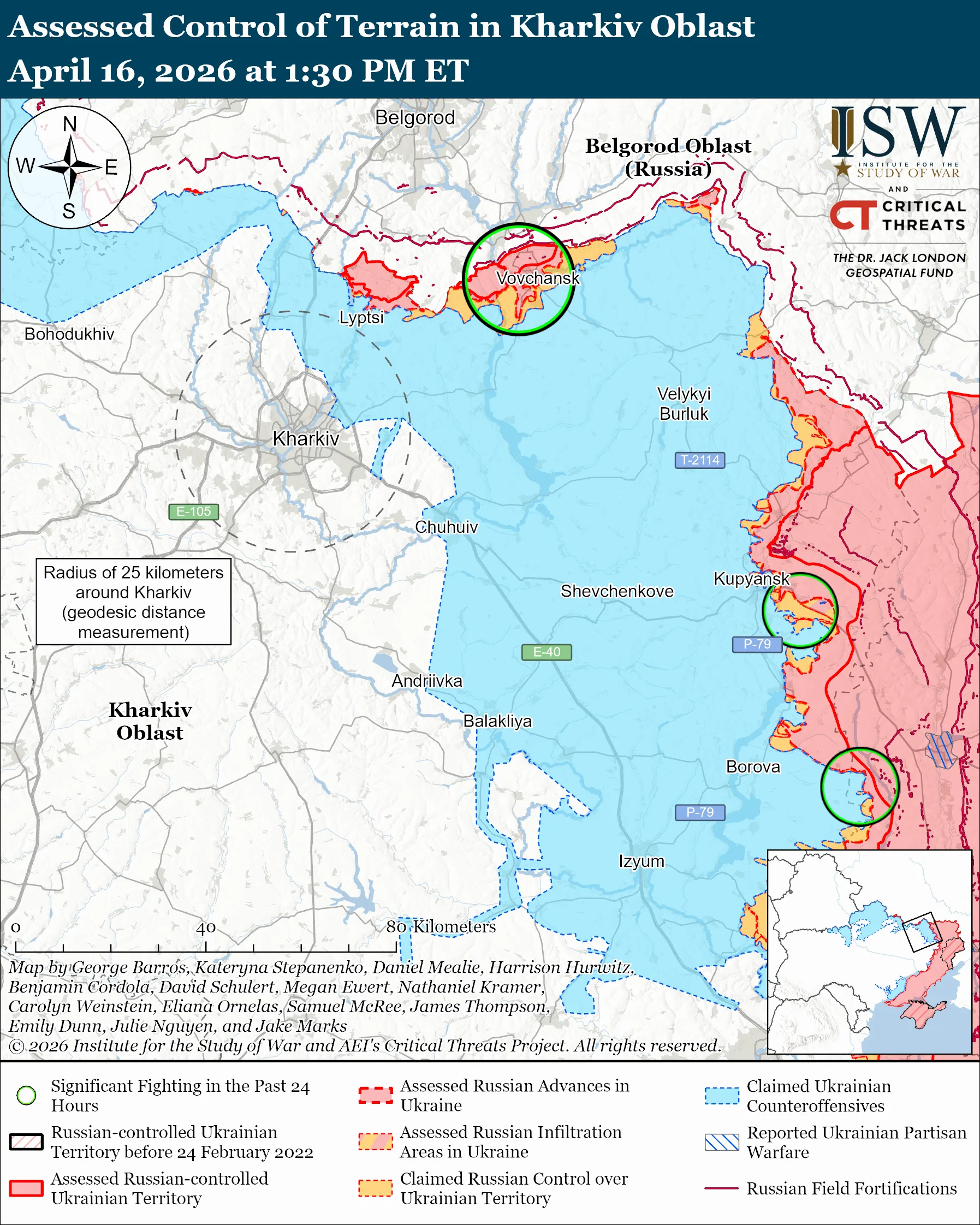 Карта бойових дій в Україні на 17 квітня 2026 року