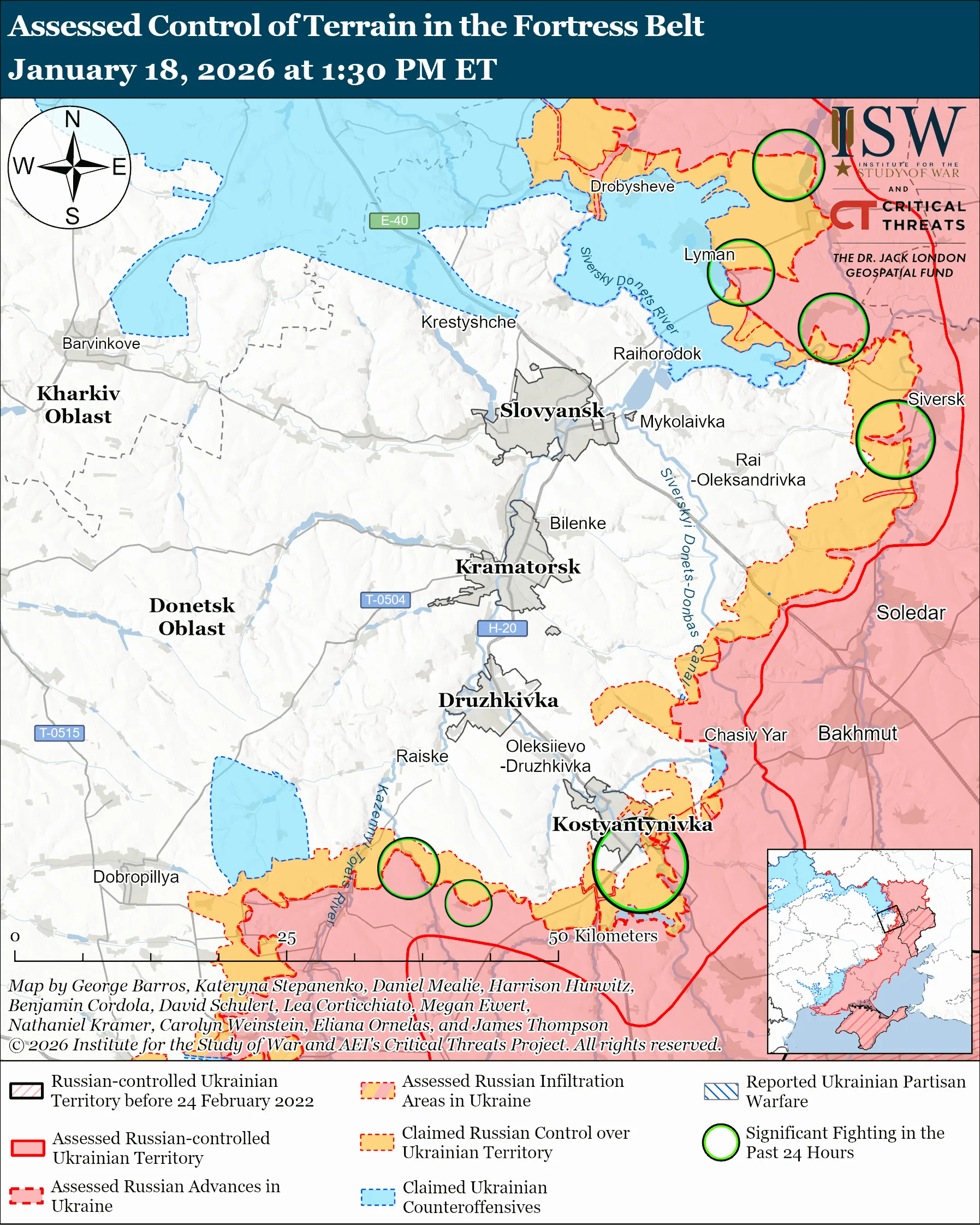 Мапа бойових дій в Україні станом на 19 січня 2026
