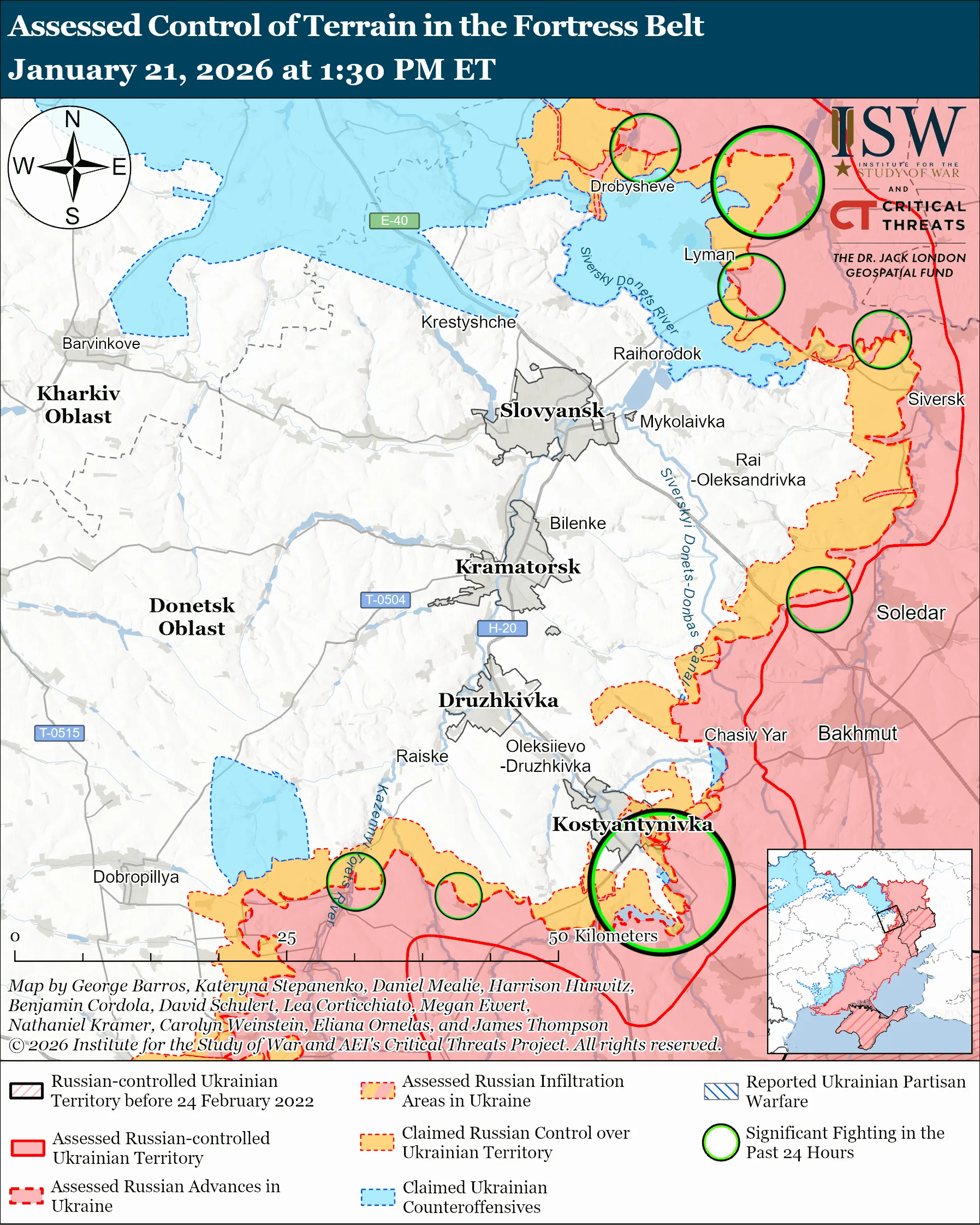 Мапа бойових дій в Україні станом на 22 січня 2026