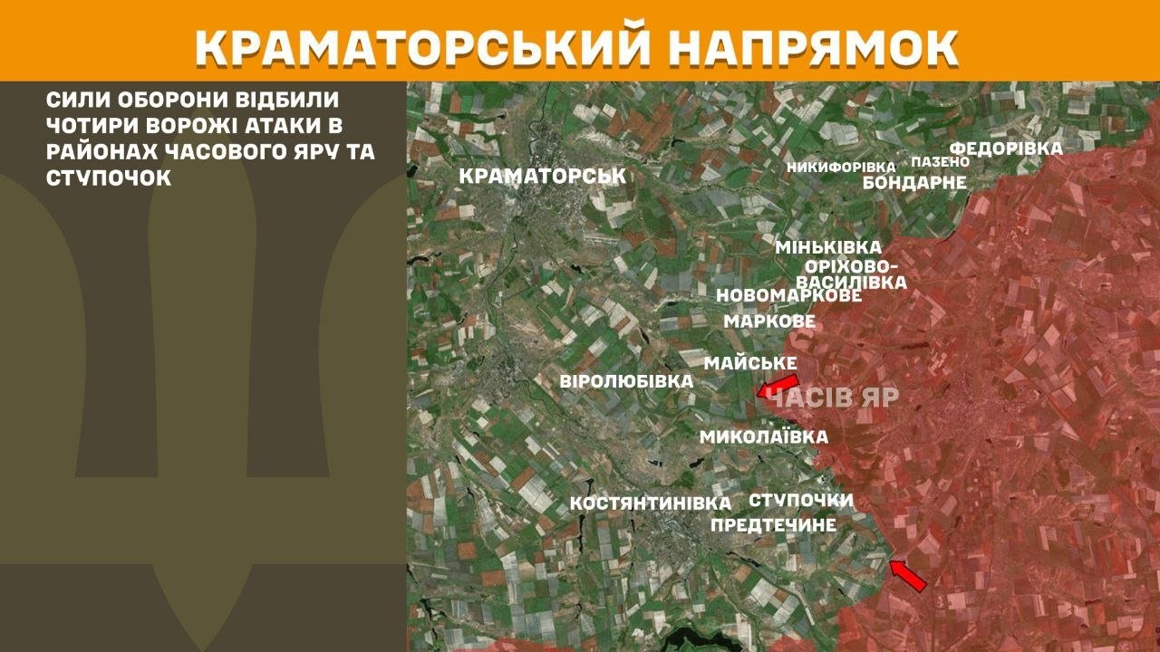 На Краматорському напрямку Сили оборони відбили чотири ворожі атаки в районах Часового Яру та Ступочок.
