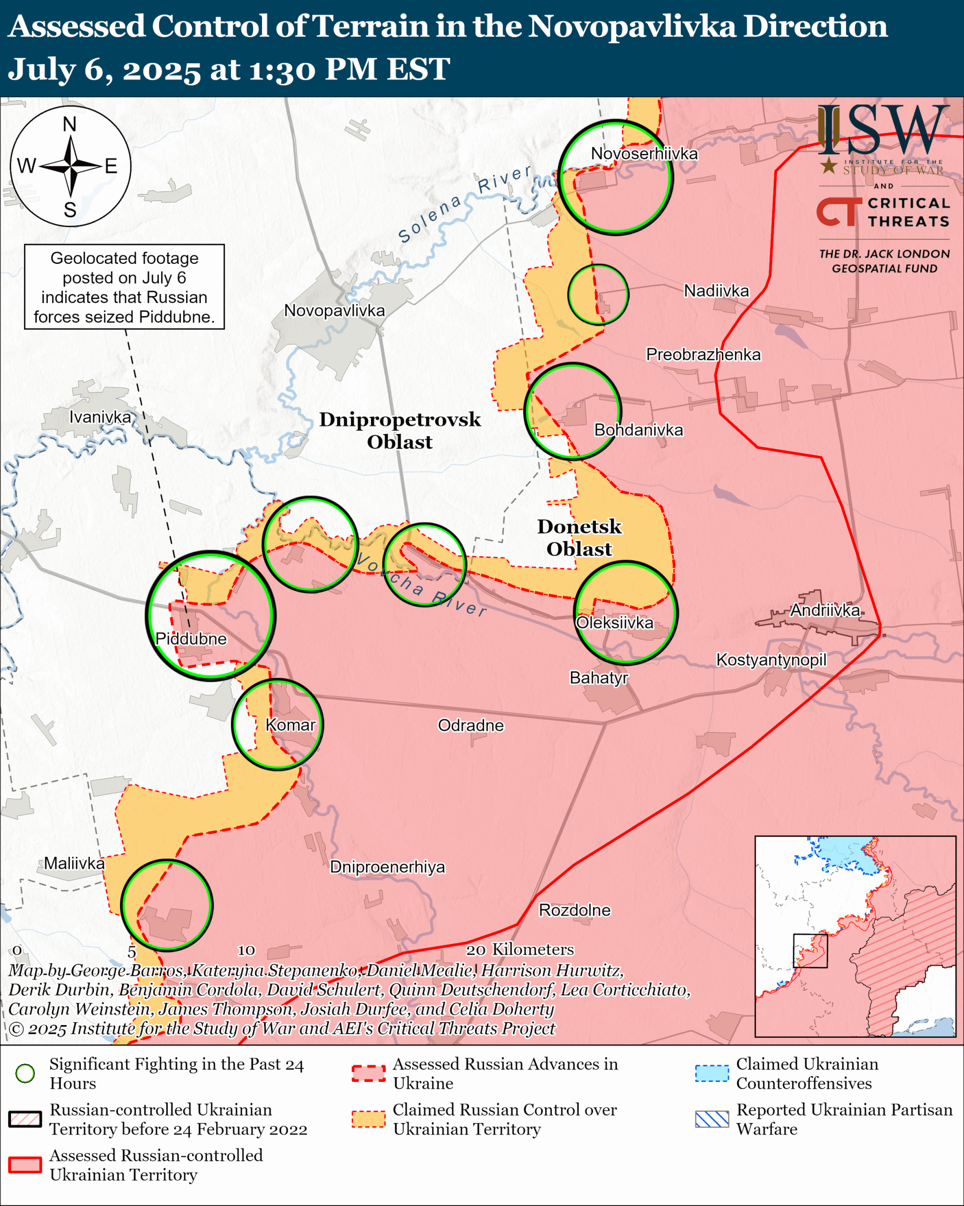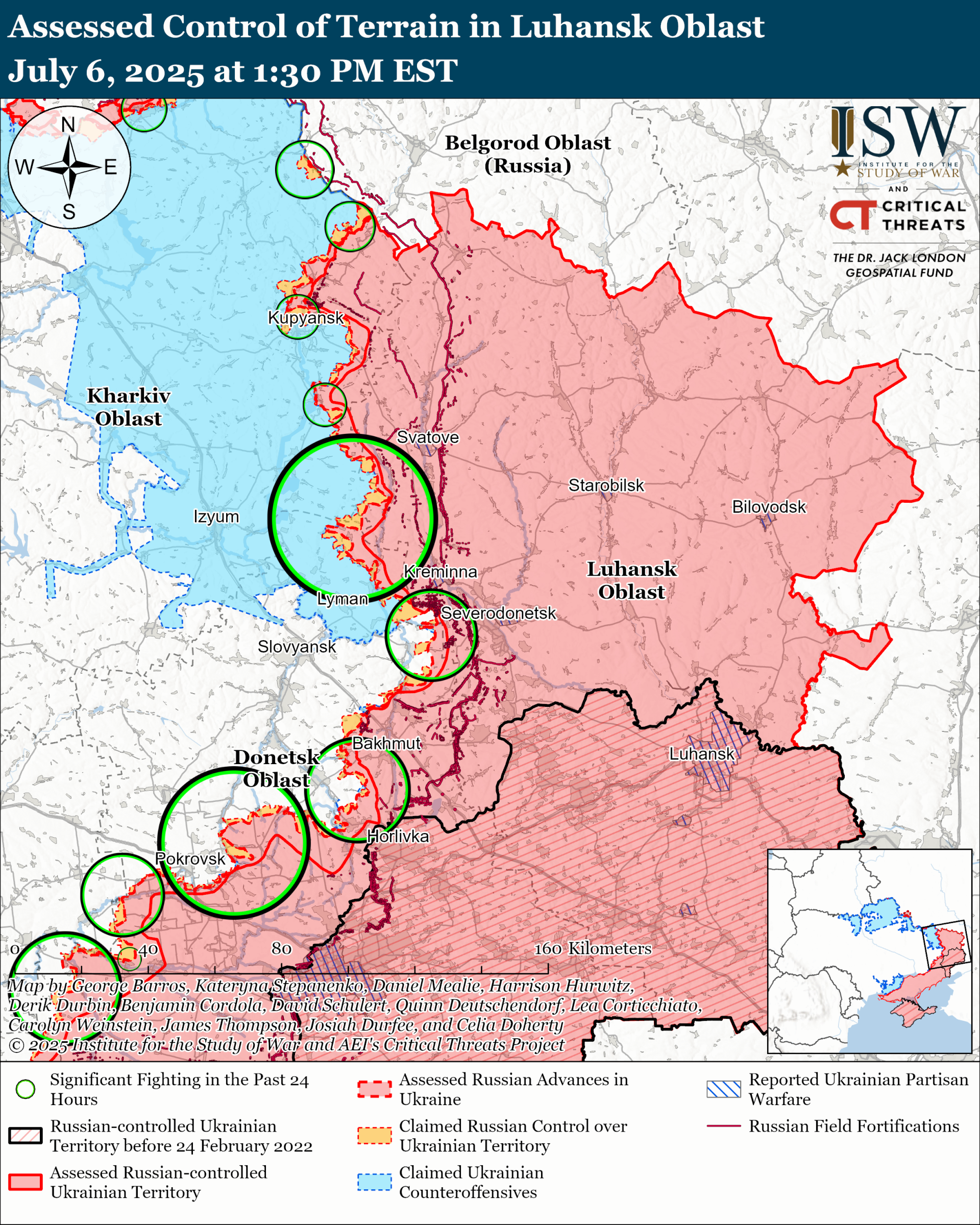 Мапа бойових дій в Україні станом на 7 липня 2025