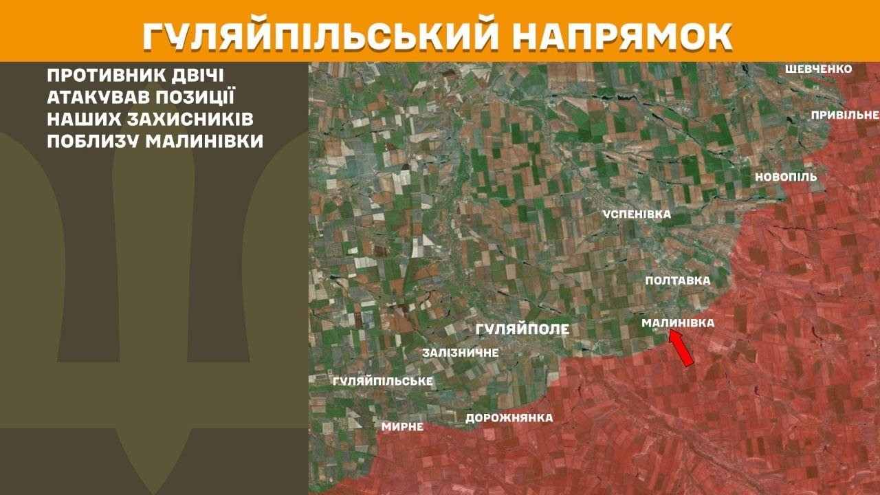 Противник двічі атакував позиції наших захисників поблизу Малинівки на Гуляйпільському напрямку.