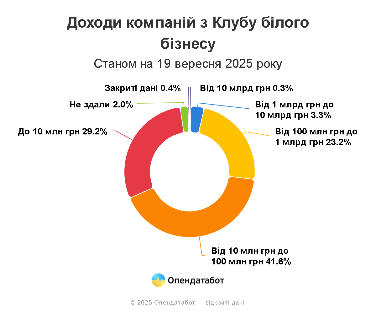 20 компаній з переліку мали доходи понад 10 млрд грн за 2024 рік, ще 220 — від 1 до 10 млрд. Найбільш численною є група компаній з оборотом від 10 до 100 млн грн — 2 751 учасник. Ще 130 компаній не здали фінансову звітність за минулий рік, а 24 залишаються із закритими даними.