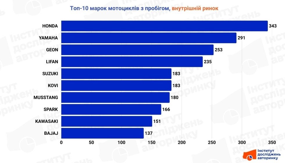У сегменті нових мотоциклів в Україні лідирують бренди, добре знайомі покупцям із бюджетного та утилітарного сегментів — Spark, Musstang, Lifan, Geon, Kovi, Forte. Їх обирають за простоту, ремонтопридатність і доступну ціну. На додачу — стабільний попит на Bajaj та Shineray.