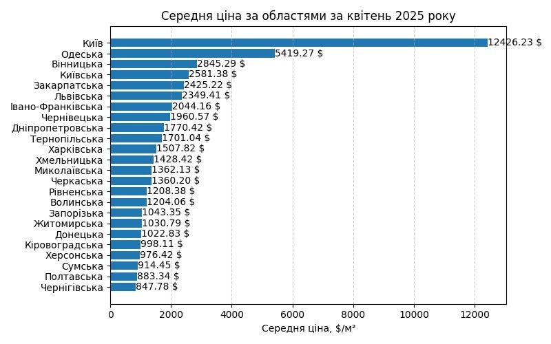 Середня ціна за 1 ар (100 м²) по країні становила близько $2 500 (≈103 тис. грн), що перевищує показник грудня 2024 року,