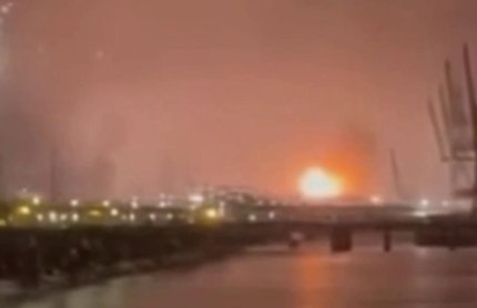 Зазначається, що через пожежу у паливних резервуарах було зупинено перевалку нафти.