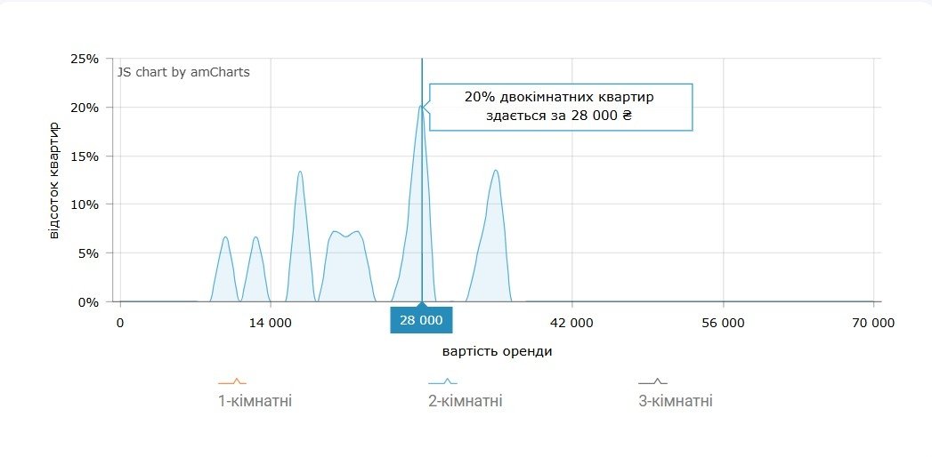 Також за даними порталу M2bomber найбільш поширеною ціною "двійок" можна вважати 28 000 грн. За такою ціною здають 20% двокімнатних квартир у Львові.