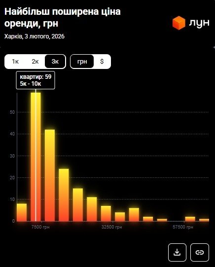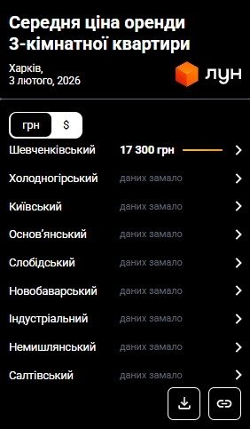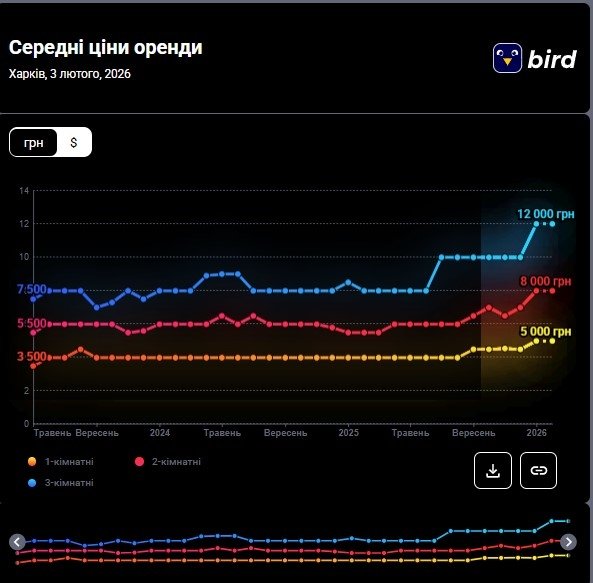 Ціни на оренду квартир у Харкові у лютому 2026 (інфографіка)
