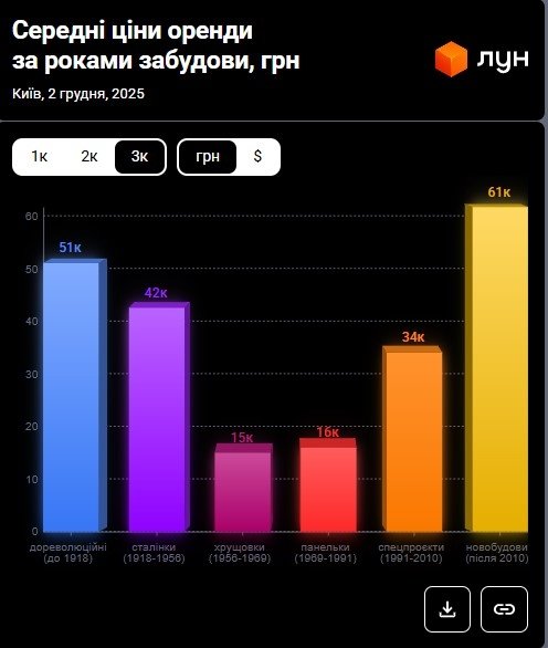 Ціни на оренду квартир в Києві у грудні 2025 (інфографіка)