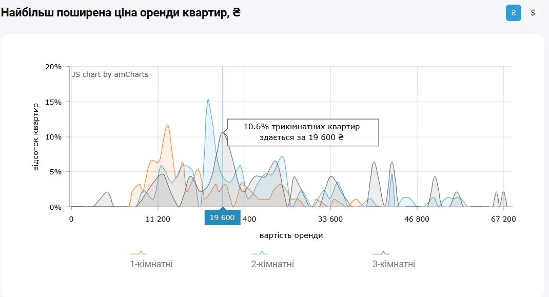 Найбільш поширена ціна оренди 3-кімнатних квартир в Києві