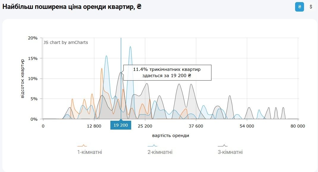 Найбільш поширена ціна оренди 3-кімнатних квартир в Києві