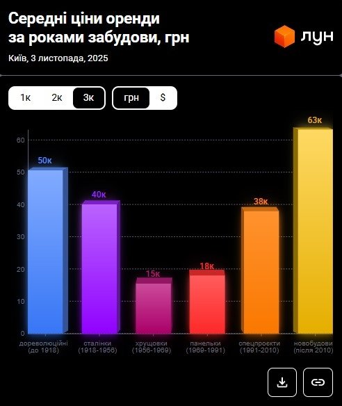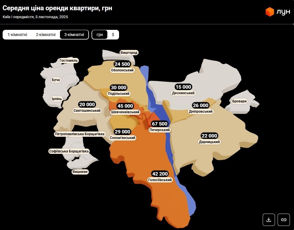 Ціни на оренду квартир в Києві у листопаді 2025 (інфографіка)