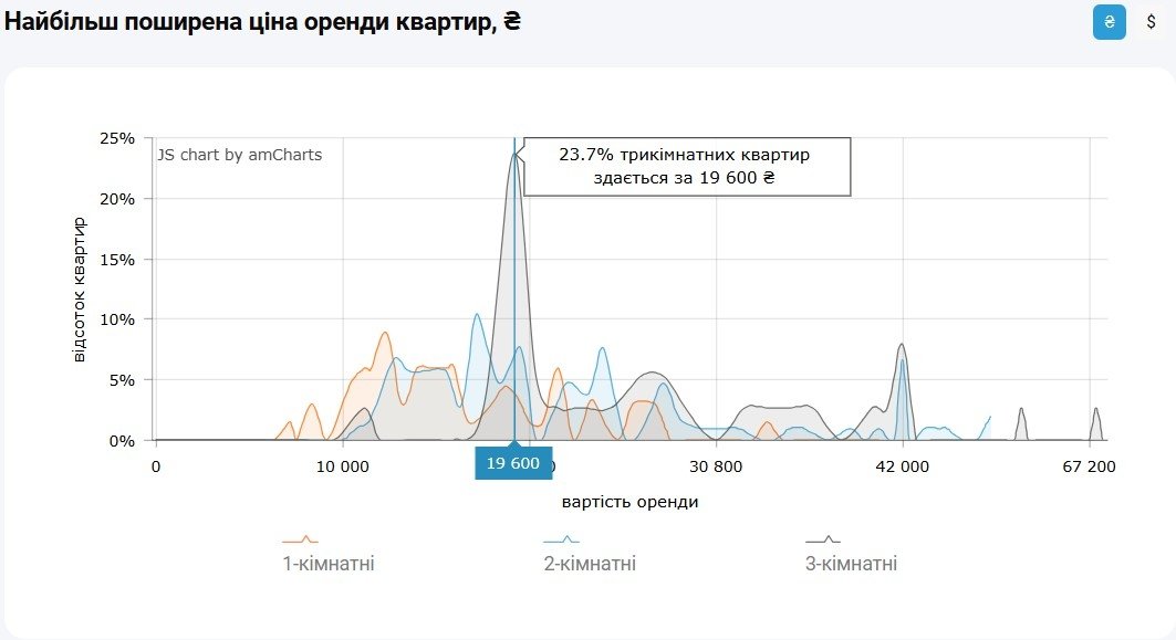 Найбільш поширена ціна оренди 3-кімнатних квартир в Києві