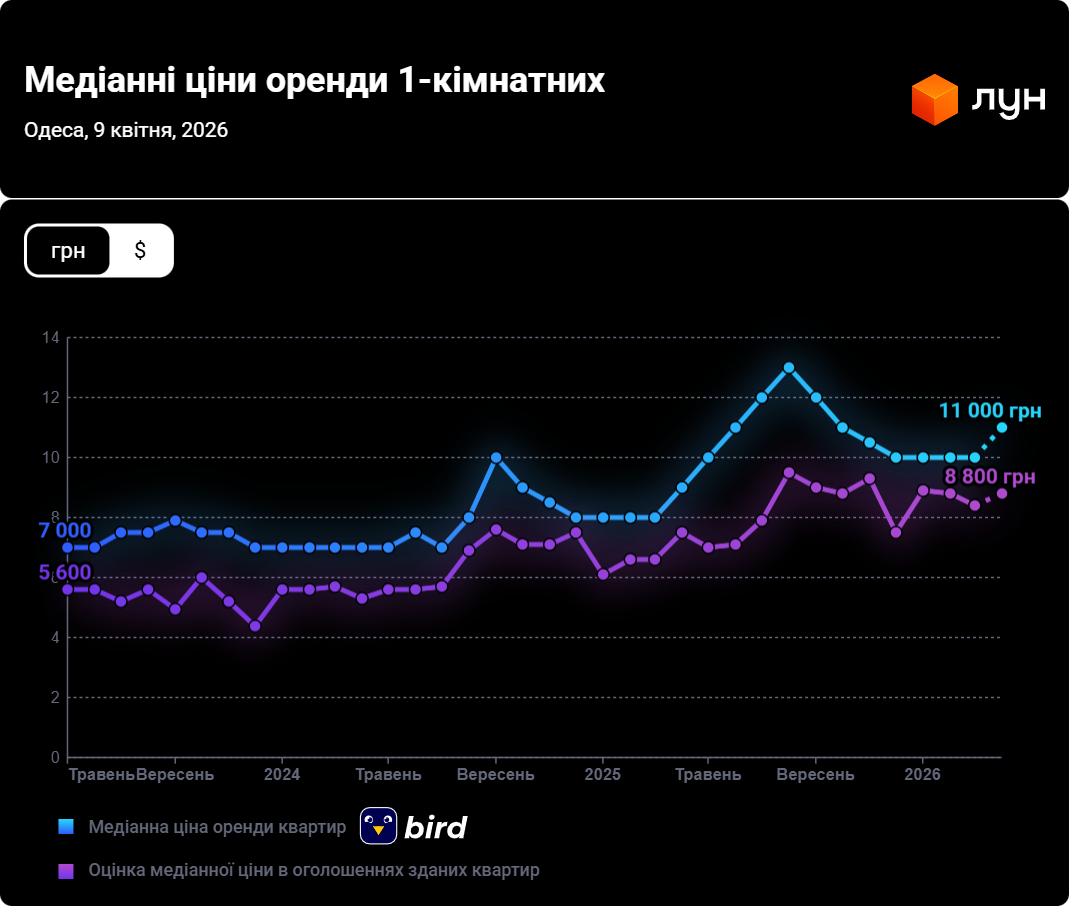 Ціни на оренду квартир в Одесі у квітні 2026 (інфографіка)