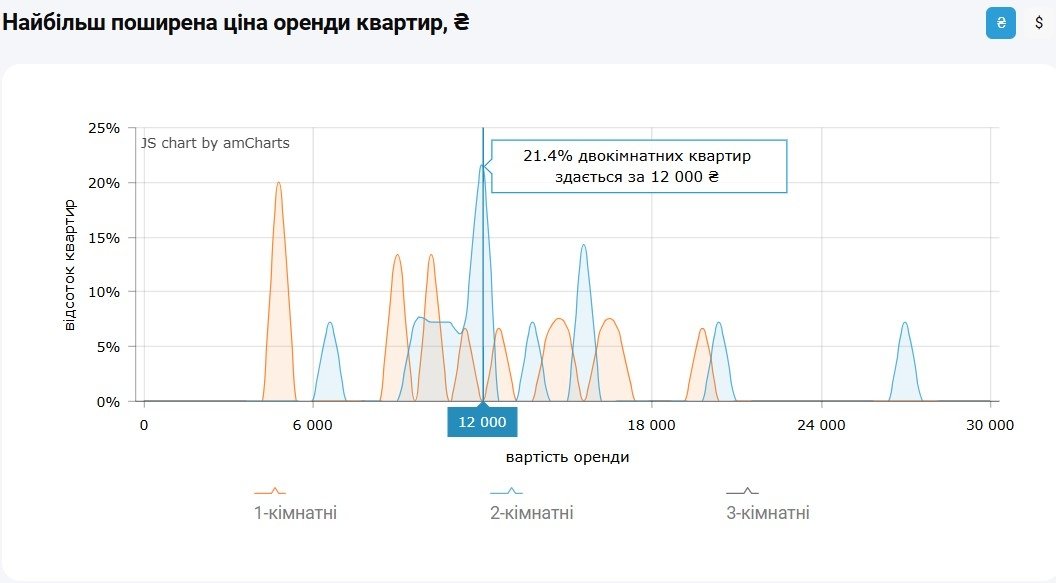 Тобто, найбільше пропозицій по оренді двокімнатних квартир (157) припадає саме на цей ціновий діапазон, що можна побачити на інфографіці нижче.
