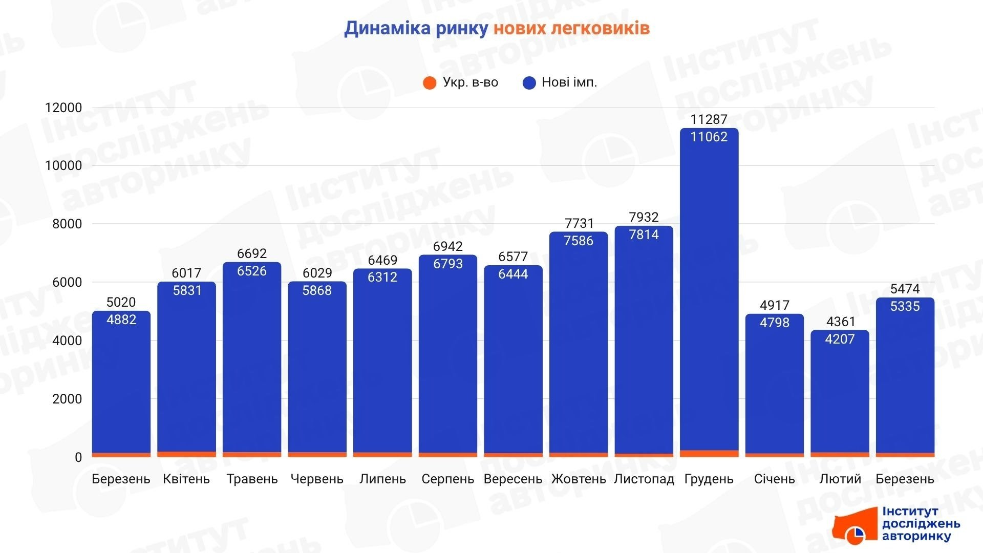 Март 2026 года стал месяцем реального обновления рынка новых автомобилей. По данным Института исследований авторынка, в течение марта 2026 года украинцы и местные предприятия приобрели 5,5 тысяч новых легковых автомобилей — лучший результат с начала года. Читайте на Delo.ua больше об итоговом состоянии рынка новых авто за март 2026 года.