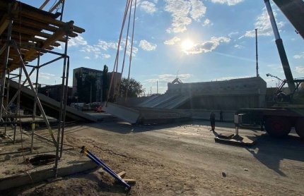 30 сентября во время работ произошел обвал балок. Как сообщили в RDS, при выполнении монтажа 7-й балки она потеряла свою устойчивость, а при падении была задета часть уже смонтированной конструкции.