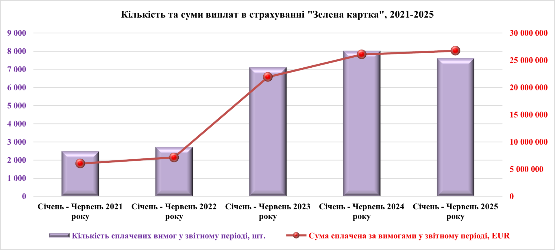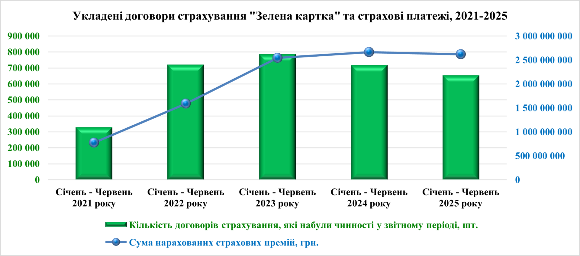 Число полисов "Зеленая карта" в 1 полугодии 2025 года уменьшилось на 8,7%. В то же время, сумма страховых премий почти не изменилась, снизившись на 1,7%.