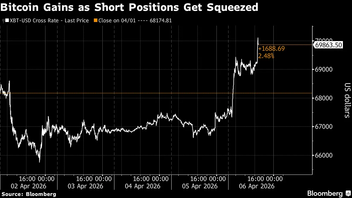 Цена биткойна продемонстрировала рост на 3,5%, достигнув пика на уровне 70 200 долларов.