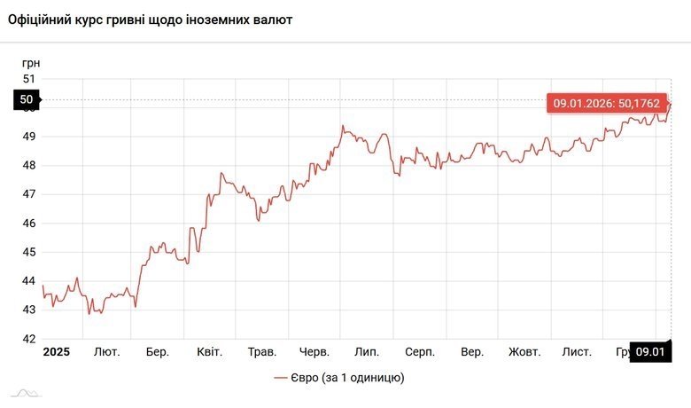 Доллар и евро установили исторические максимумы по отношению к гривне. Официальный курс доллара США, установленный Национальным банком Украины на 9 января, укрепился на двадцать семь копеек, в то же время курс евро впервые пересек отметку в пятьдесят гривен.