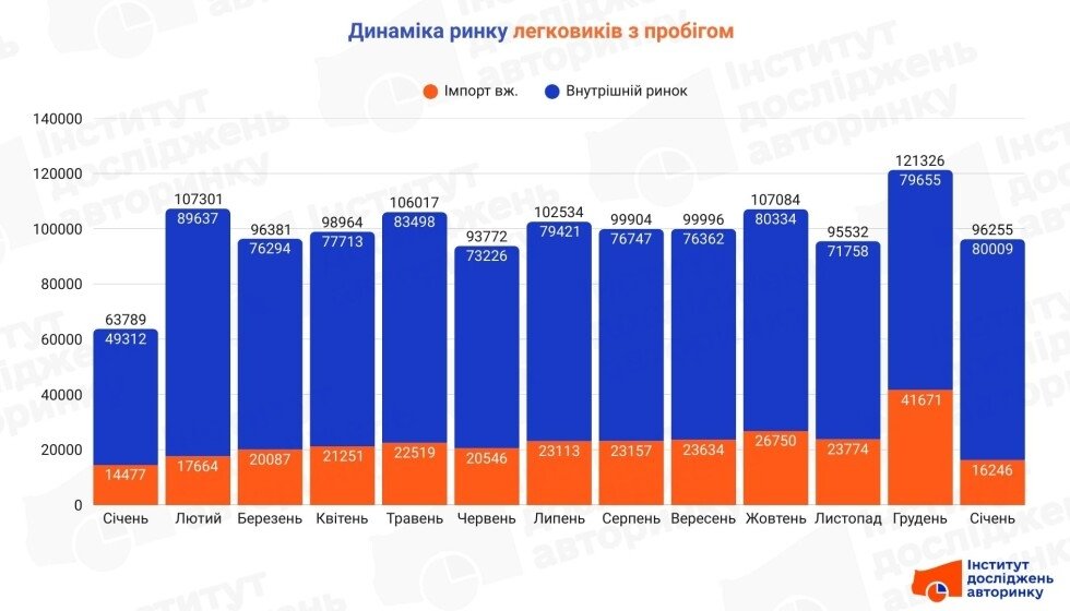 Объемы "крепостничества" сократились на 61% по сравнению с декабрем 2025 года. В то же время они были на 12,2% выше, чем в январе прошлого года. Всего на первую регистрацию было подано 16 246 легковых автомобилей с пробегом, прибывшим из-за границы.