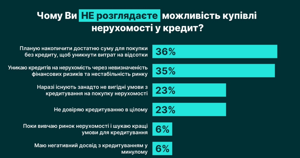 Нежелание покупать имущество в кредит украинцы объясняют слишком невыгодными условиями кредитования недоверием к ипотеке в целом.