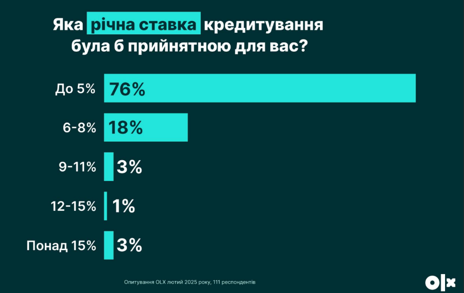 Для подавляющего большинства украинцев приемлема годовая ставка кредитования до 5%.