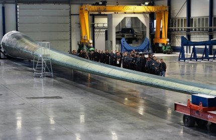 Впервые в Украине изготовлена полностью украинская лопасть для ветротурбины. Изделие длиной 75 метров и весом 25 тонн создано украинскими специалистами.