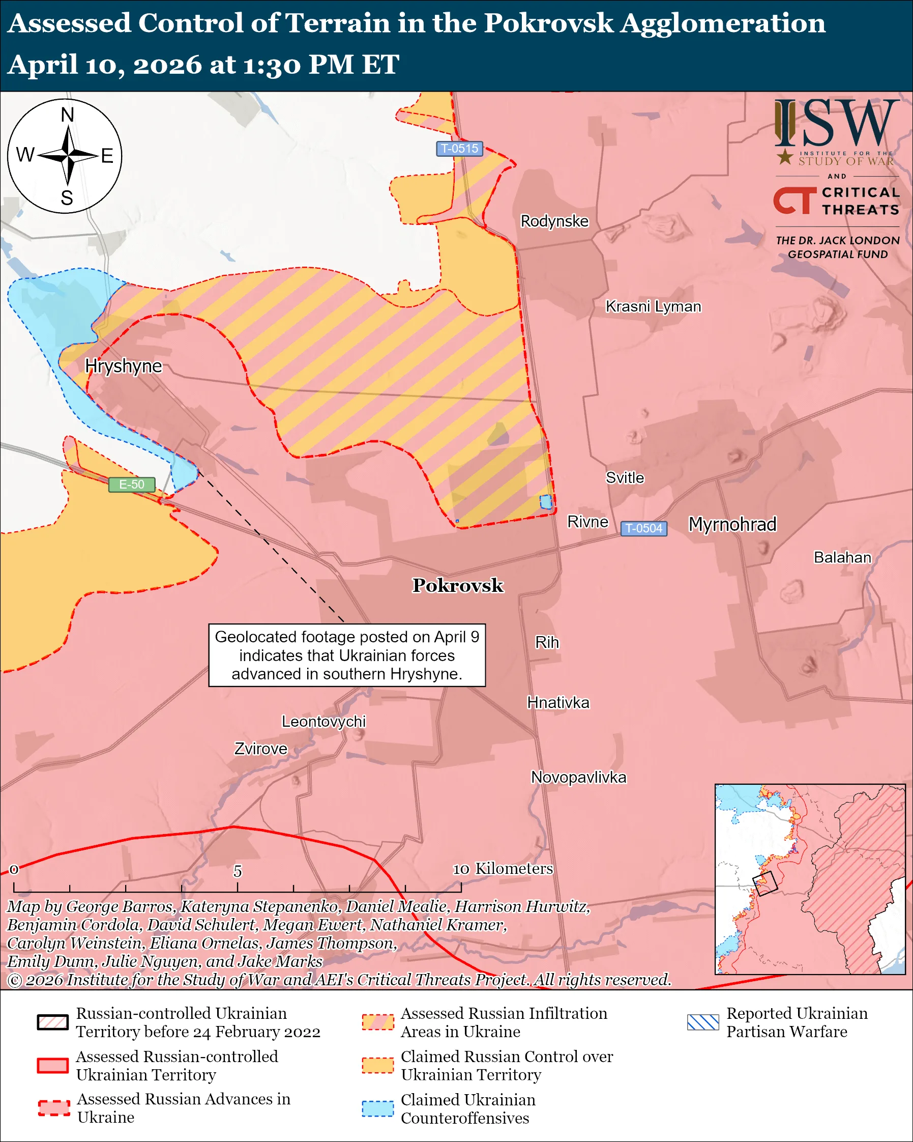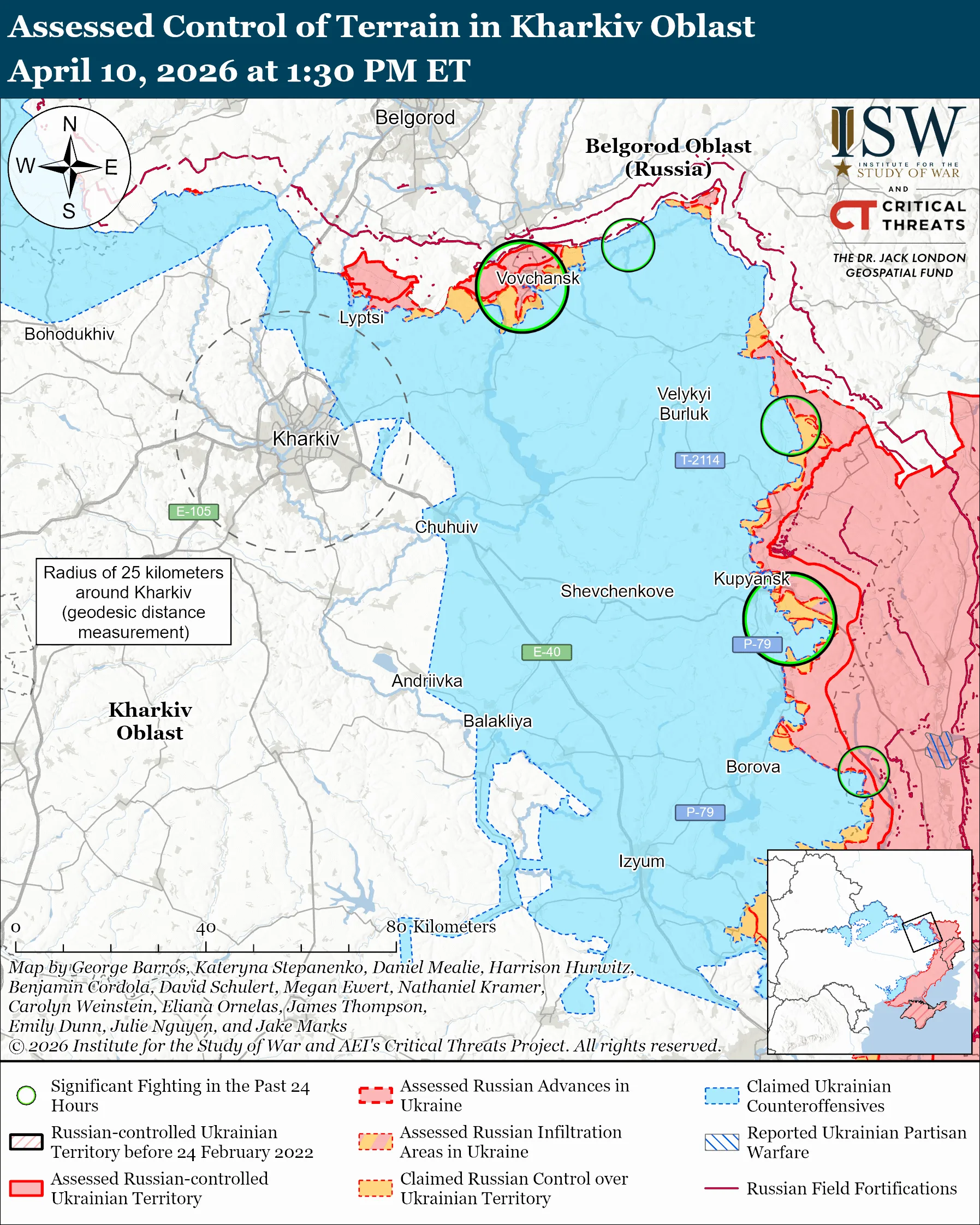 Карта боевых действий в Украине по состоянию на 11 апреля 2026 г.