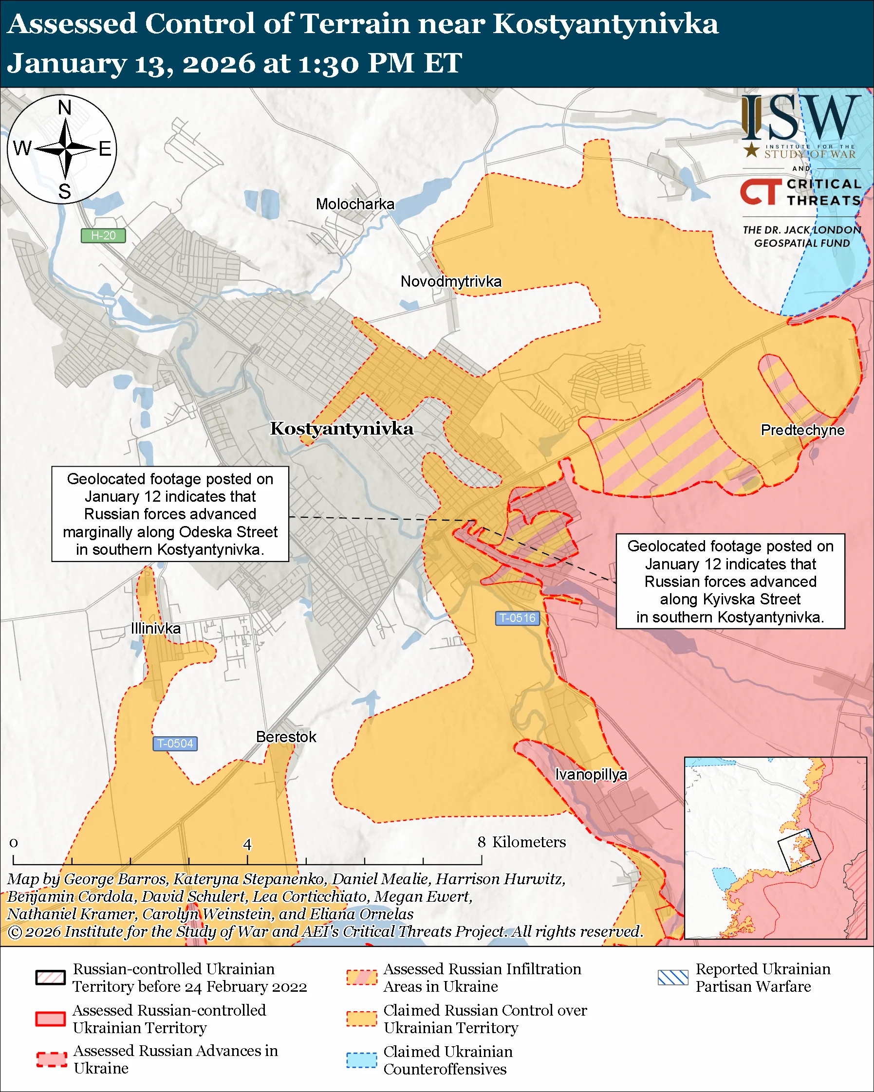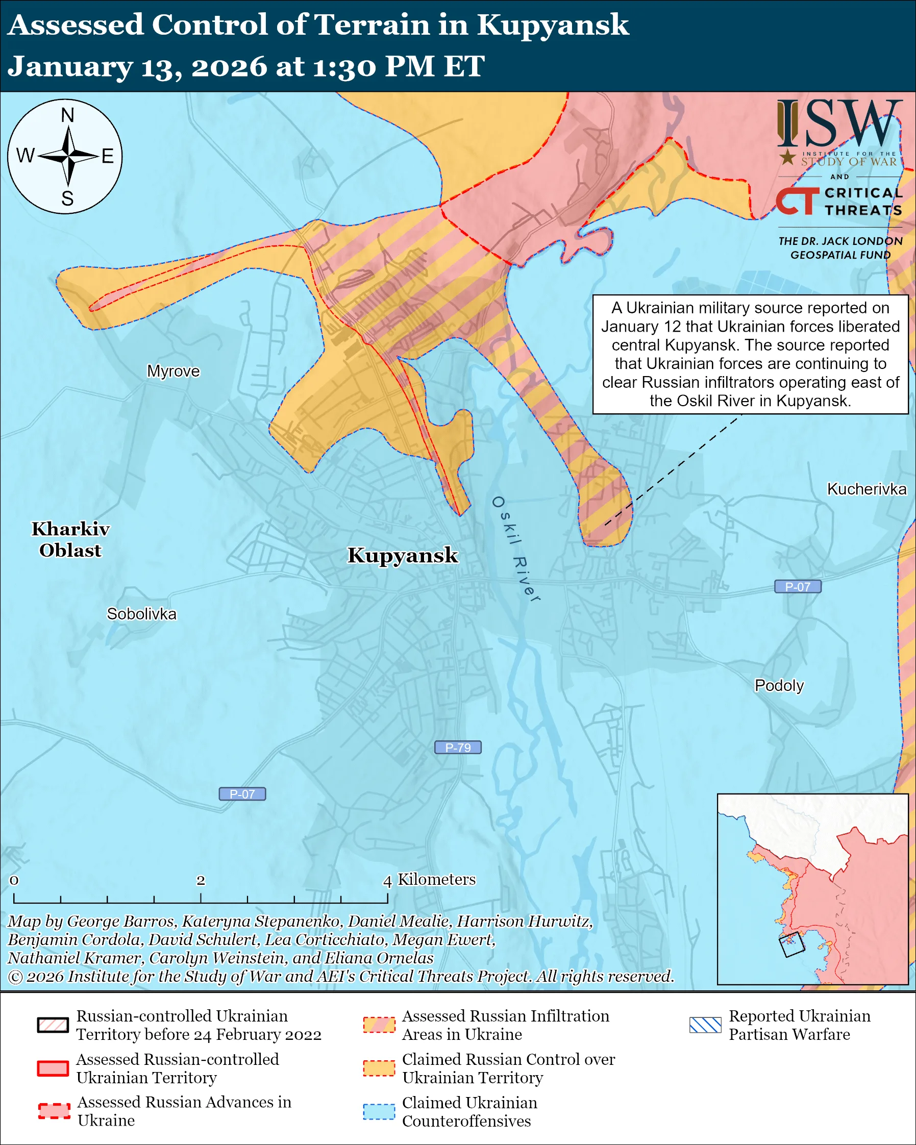 Карта боевых действий в Украине по состоянию на 14 января 2026 г.