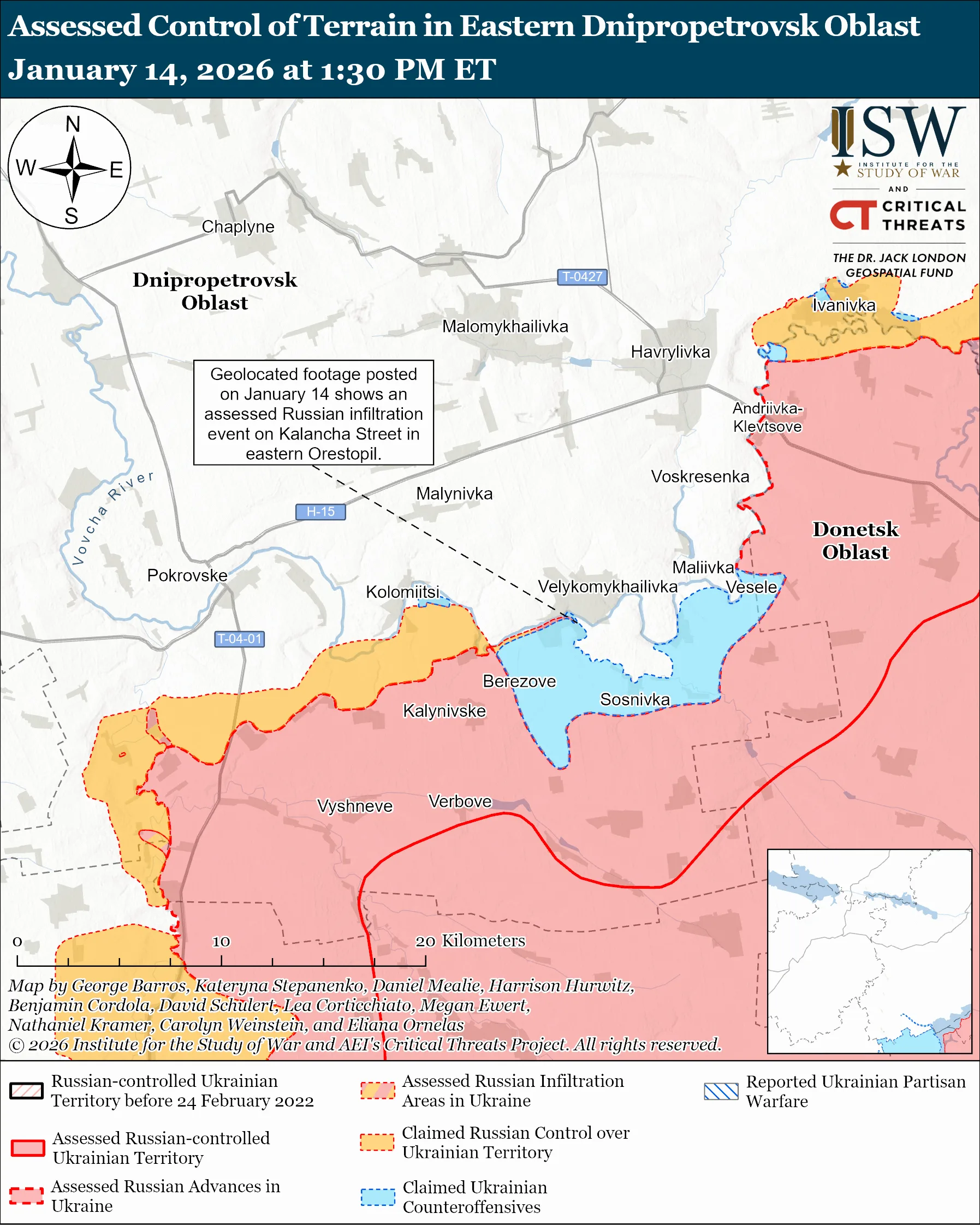 Карта боевых действий в Украине по состоянию на 15 января 2026 г.