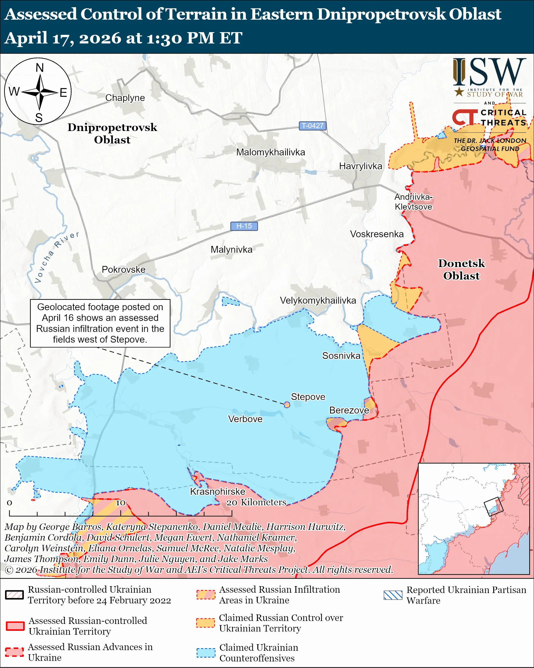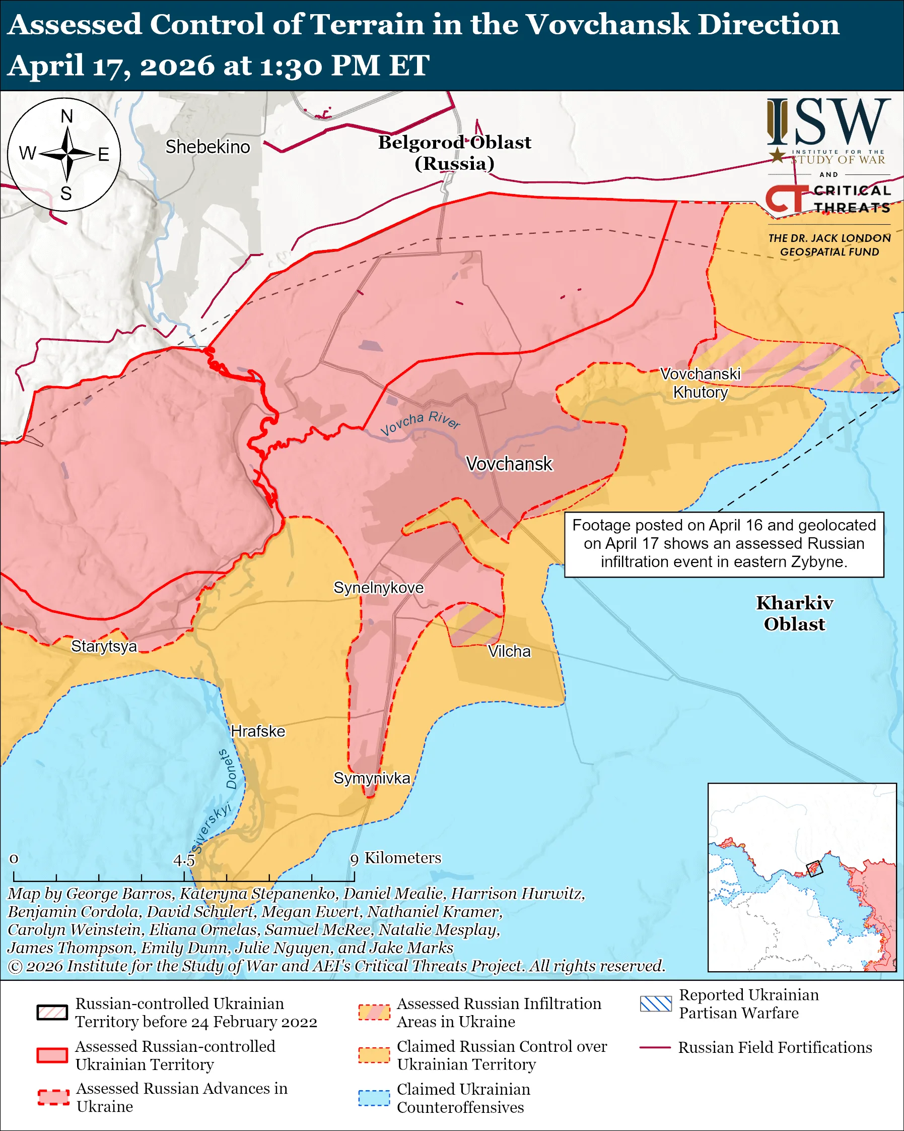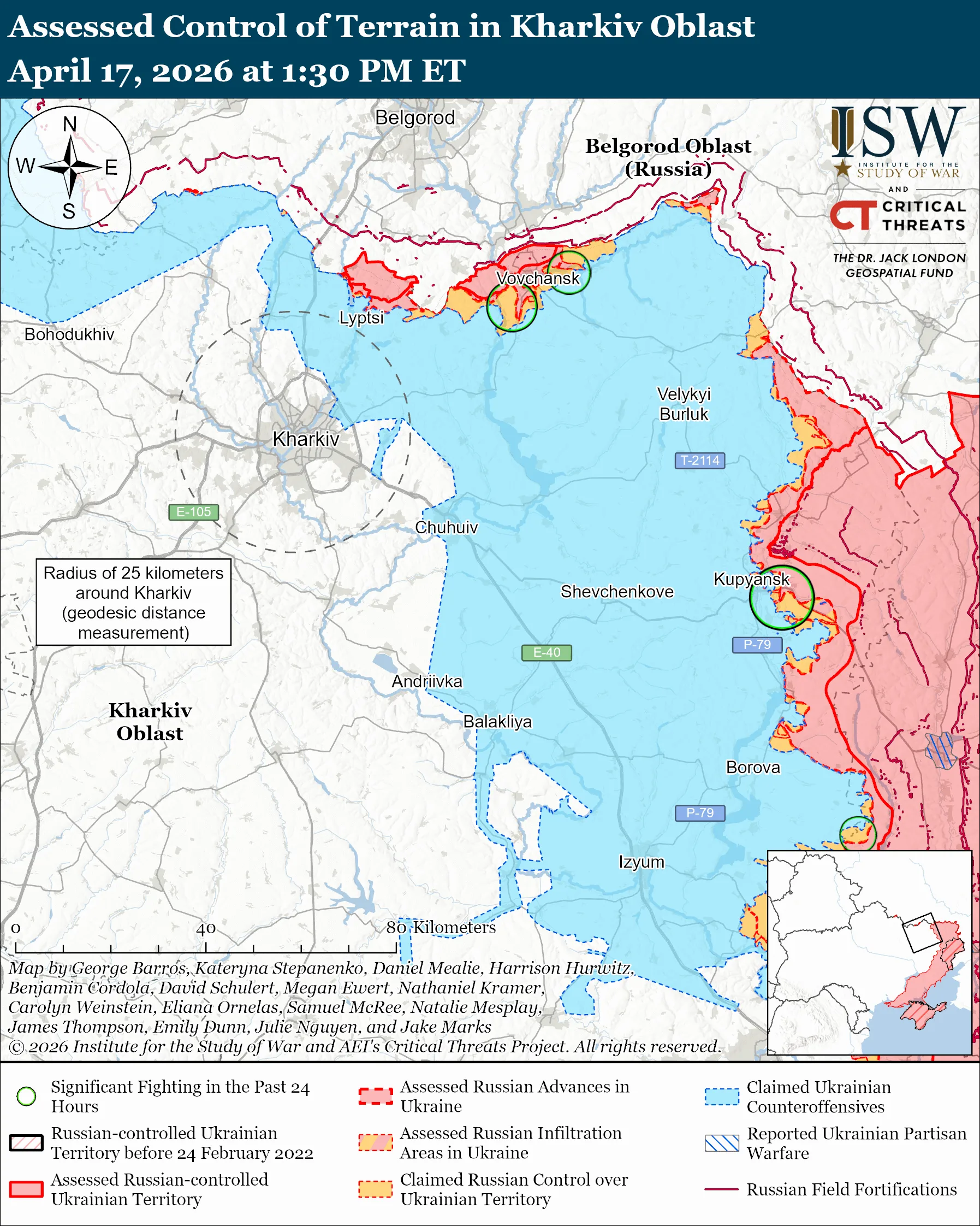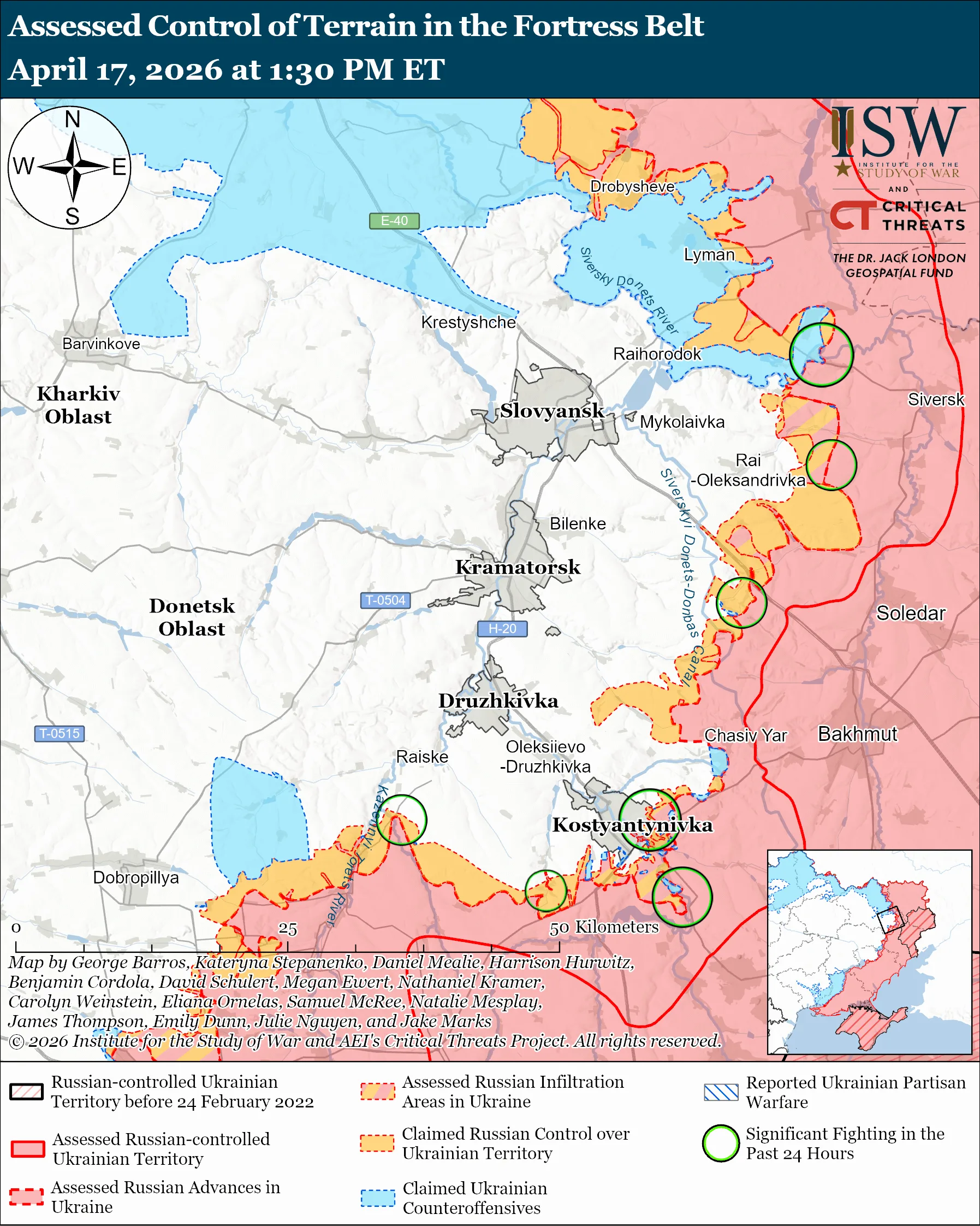 Карта боевых действий в Украине по состоянию на 18 апреля 2026 г.