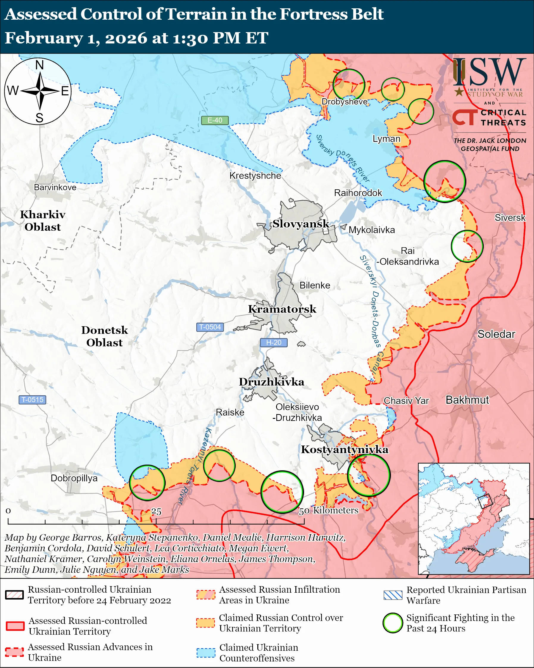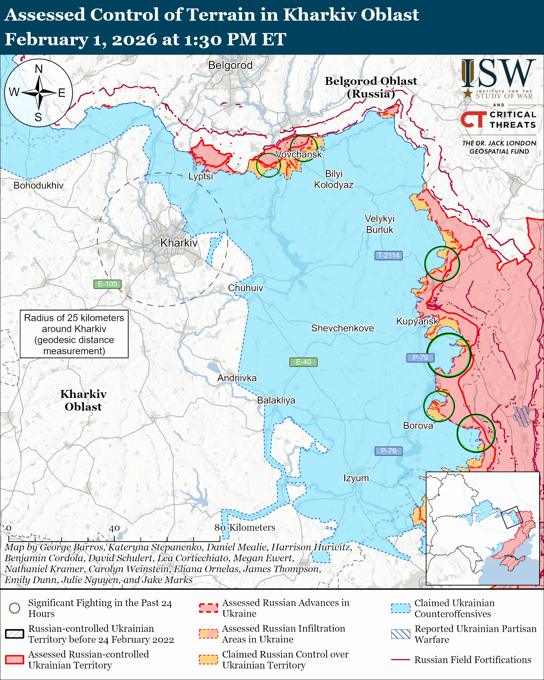 Карта боевых действий в Украине по состоянию на 2 февраля 2026 г.