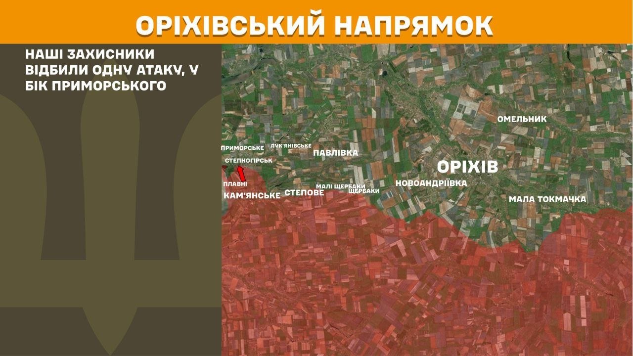 На Ореховском направлении наши защитники отразили одну атаку, в сторону Приморского.