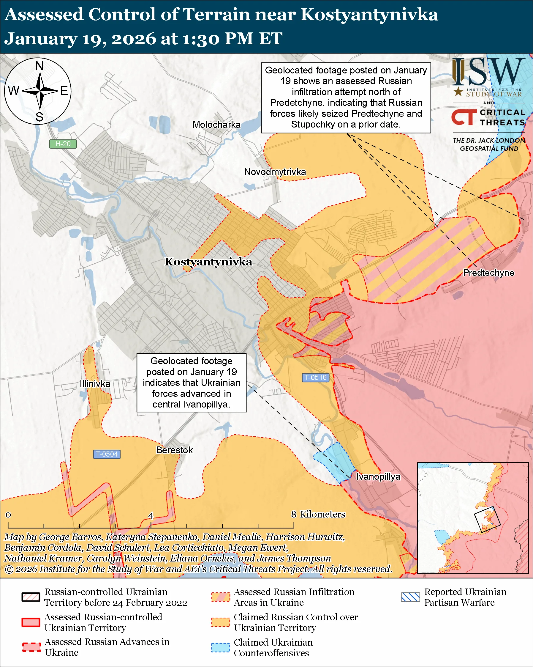 Карта боевых действий в Украине на 20 января 2026 года