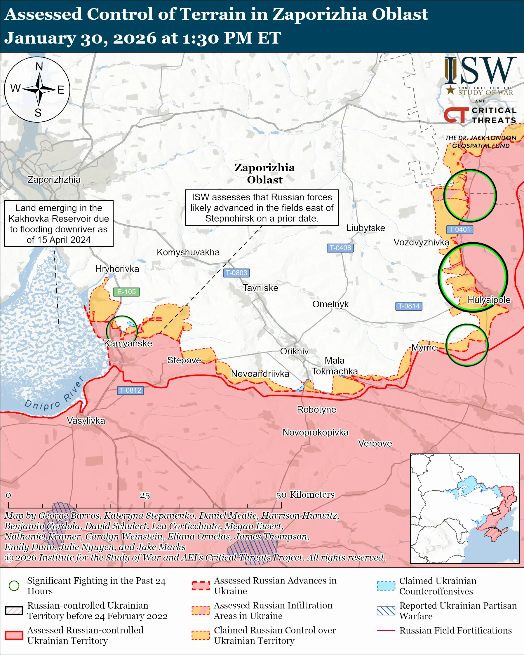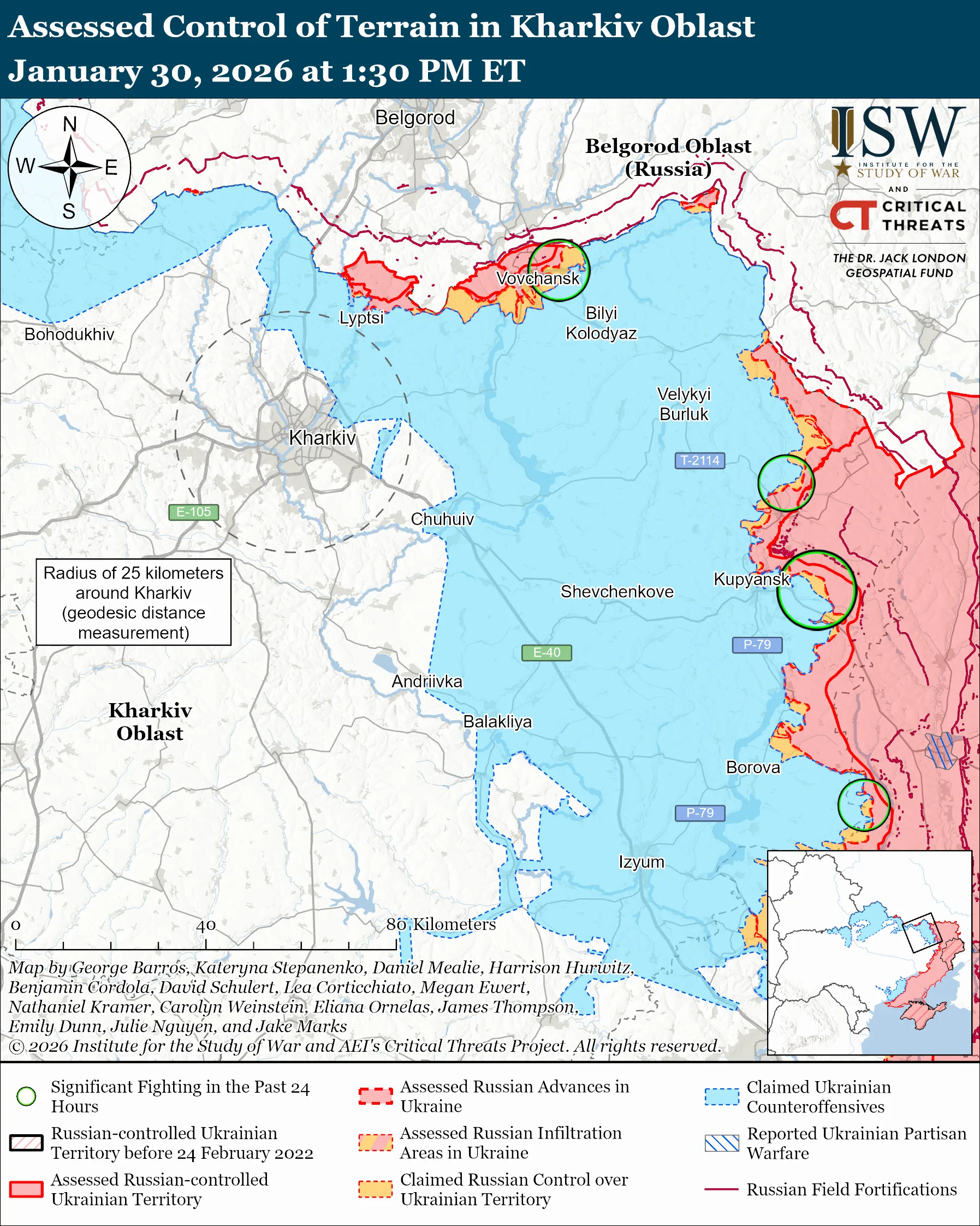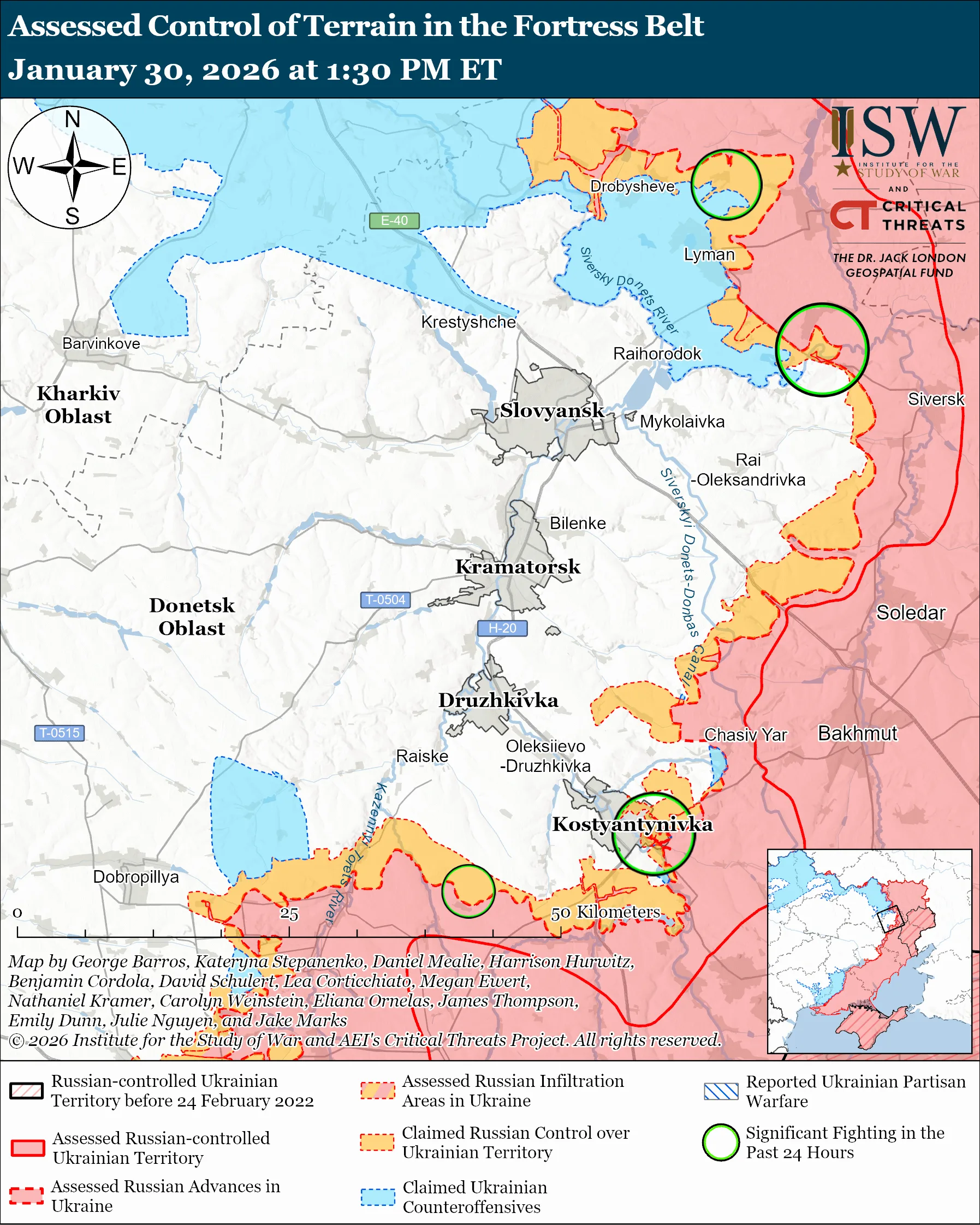 Карта боевых действий в Украине по состоянию на 31 января 2026 г.